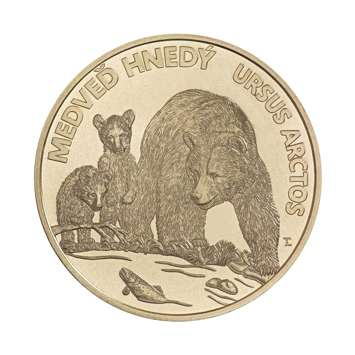 The reverse side of the collector's coin: On the reverse side of the collector's euro coin there are two bear cubs with a female bear fishing.
