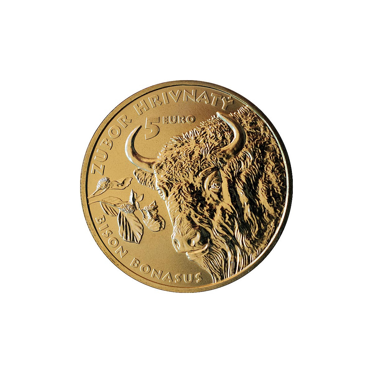 Collector's euro coin from common metals of Slovakia r. 2024 with a face value of €5 issued with the theme Fauna and Flora in Slovakia - European bison.