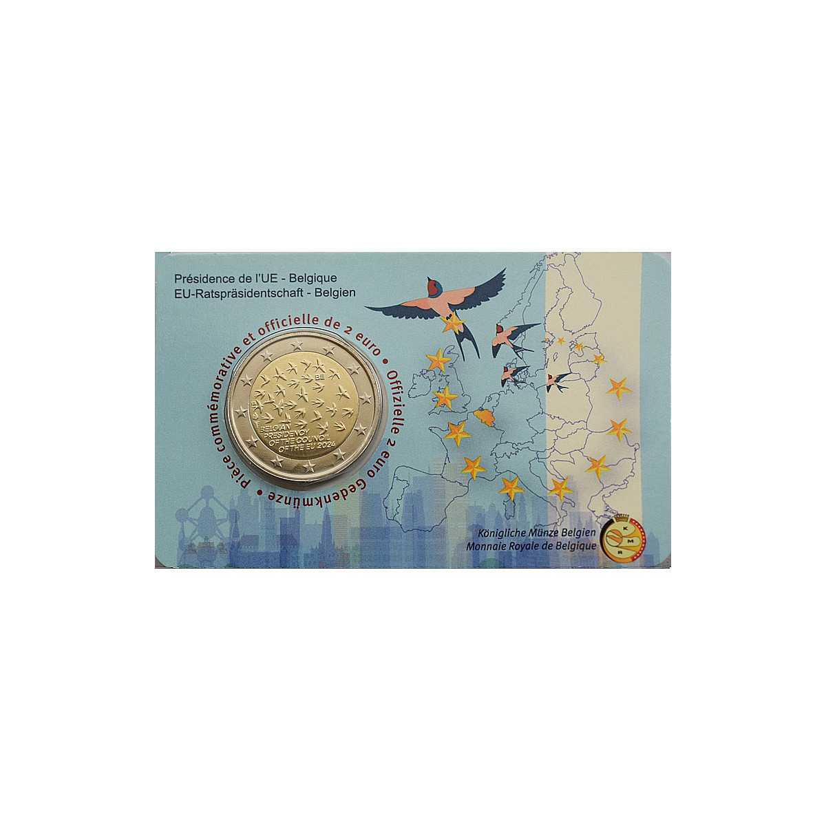 Commemorative 2 Euro coin of Belgium, issued in 2024. This collector's euro coin was issued on the occasion of Presidency of the EU.