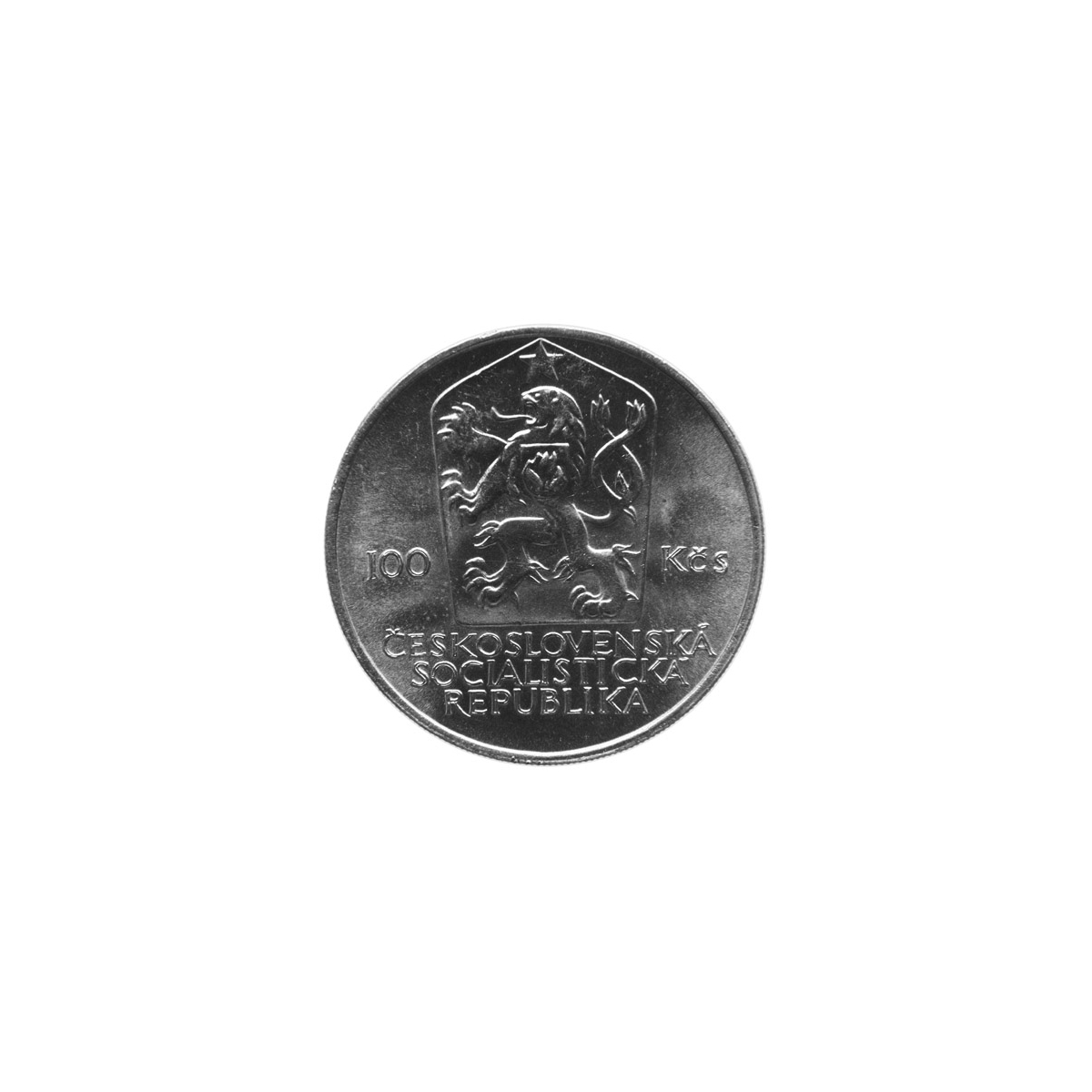 Commemorative collector's coin of Czechoslovakia from 1985 with a nominal value of 100 Kčs issued on the occasion of the 10th anniversary of the Helsinki Conference.