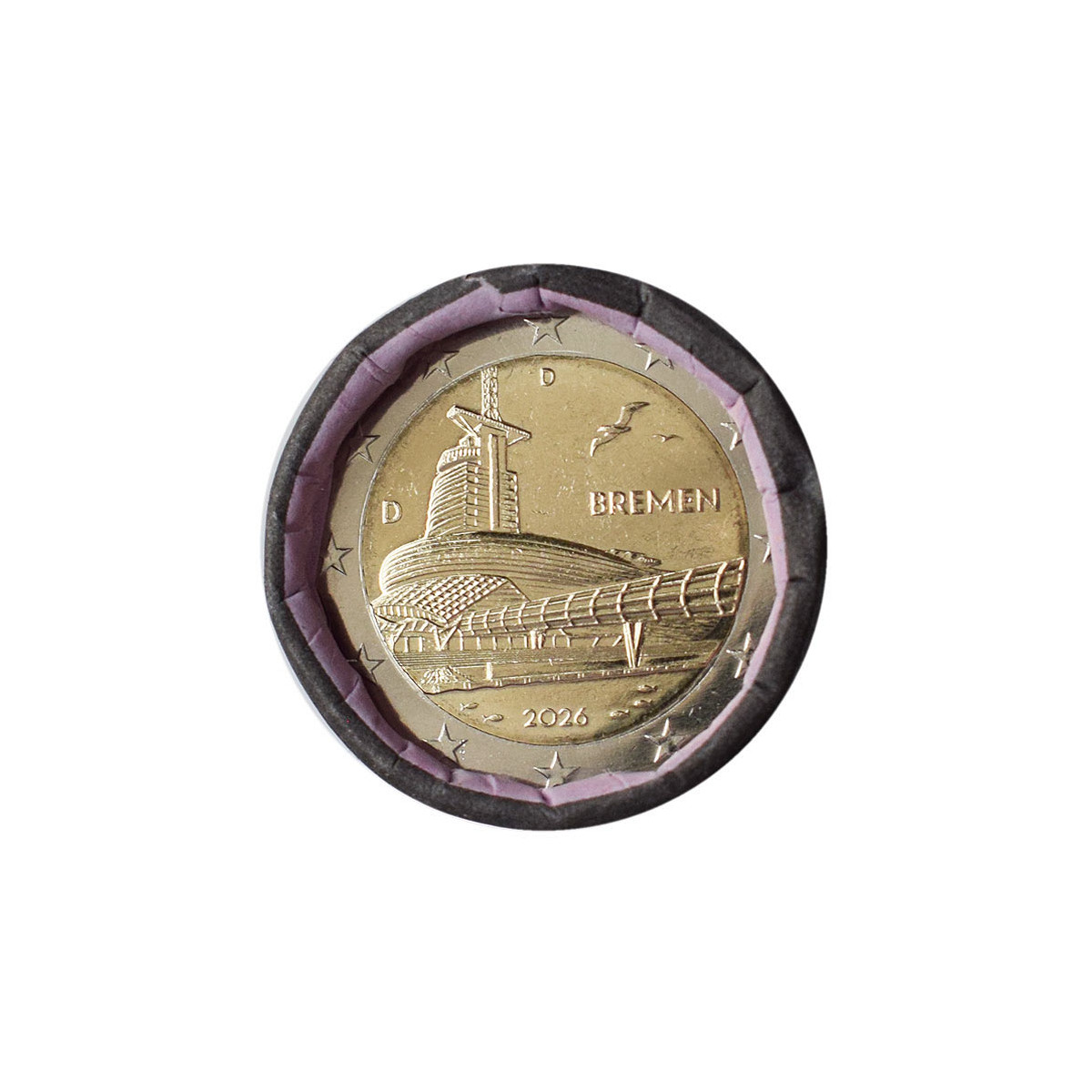Commemorative 2 Euro coin of Germany minted at the Munchen (D) mint, issued in 2026. This collector euro coin is dedicated to the famous science museum Klimahaus Bremerhaven 8°.