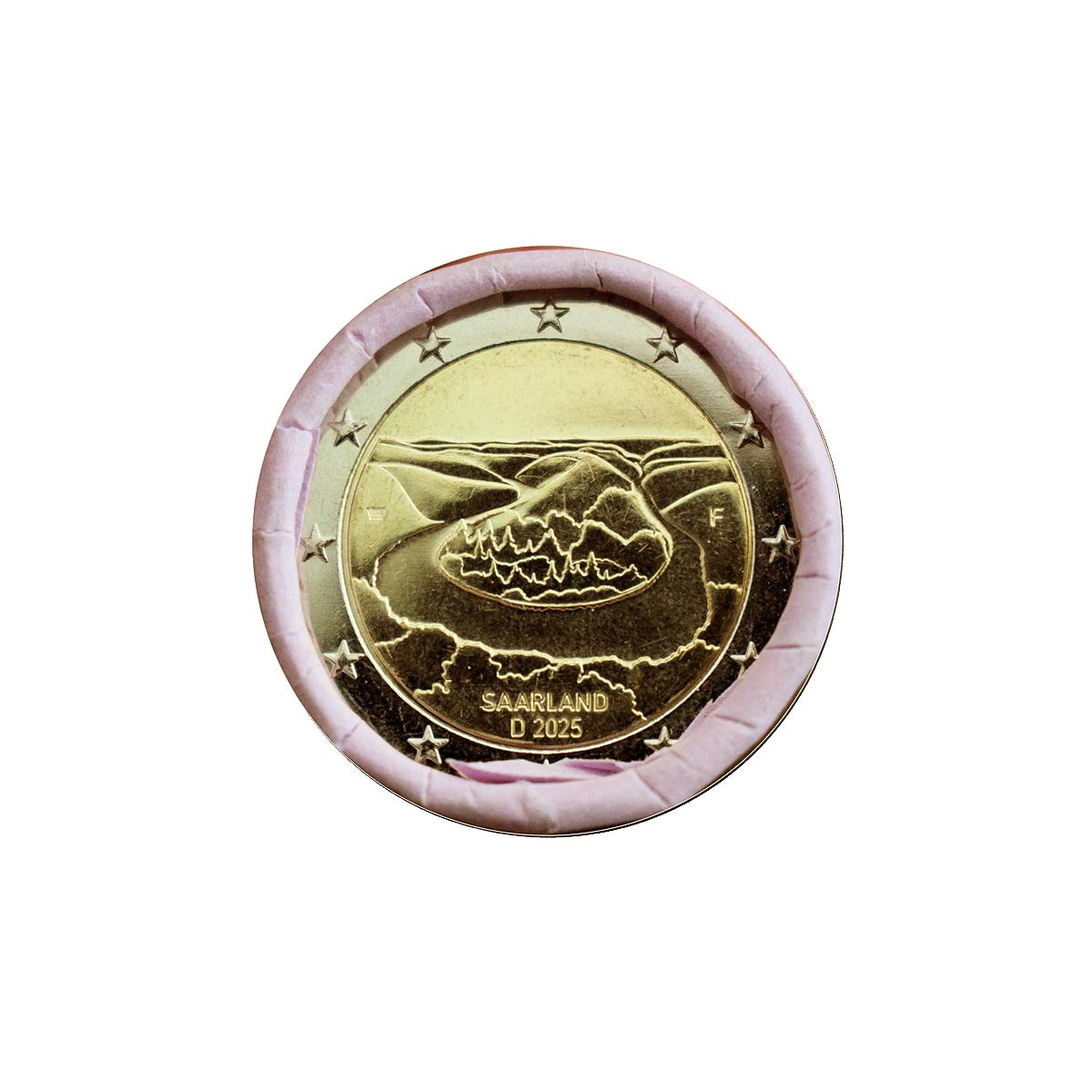 Commemorative 2 Euro coin from Germany (F), issued in 2025. This collectible euro coin was issued with motive Saarland.