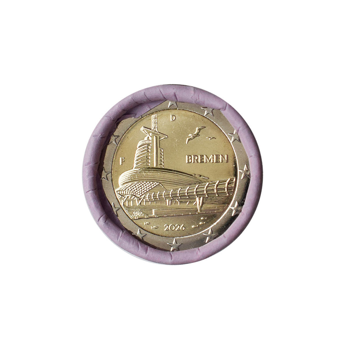 Commemorative 2 Euro coin of Germany minted at the Stuttgart (F) mint, issued in 2026. This collector euro coin is dedicated to the famous science museum Klimahaus Bremerhaven 8°.