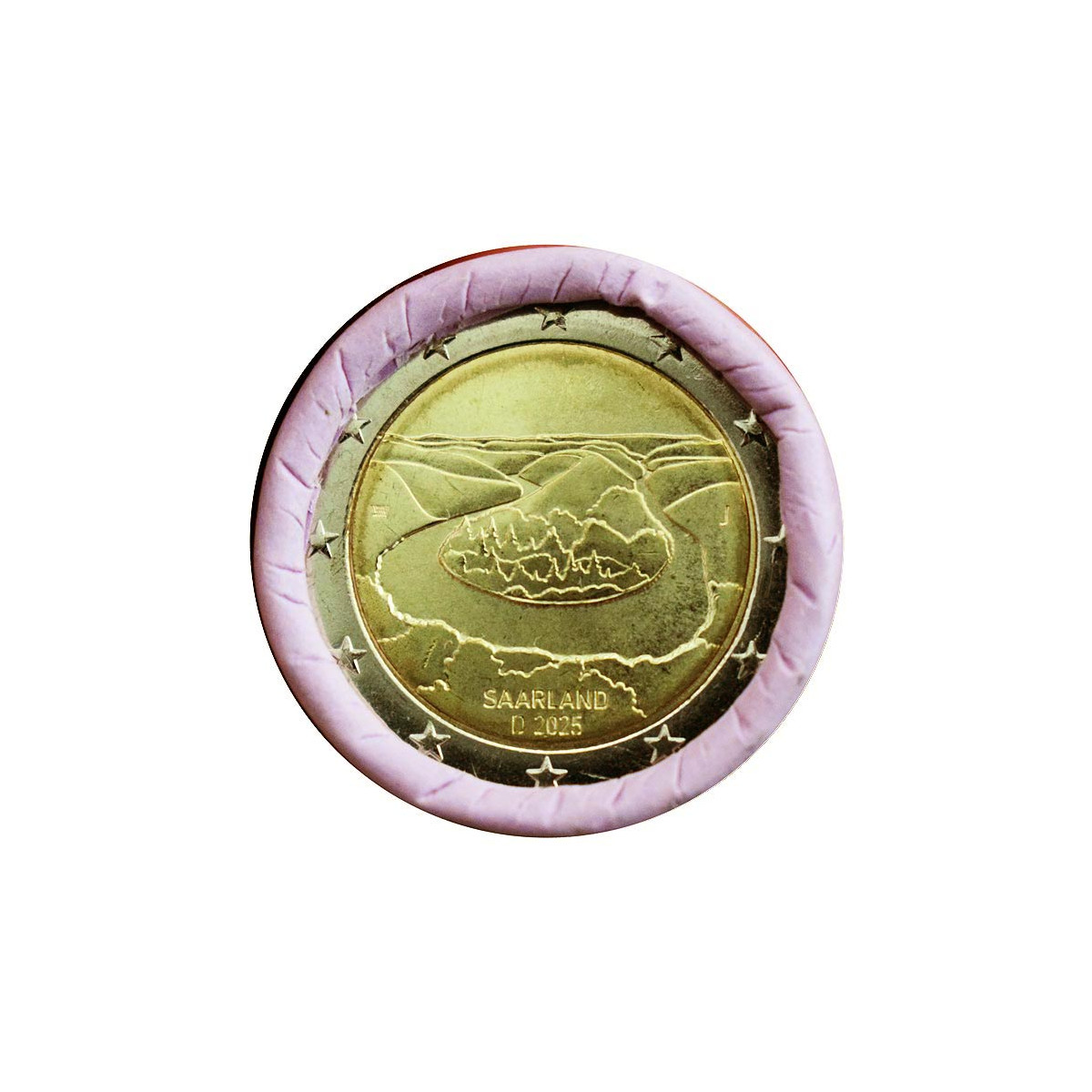 Commemorative 2 Euro coin from Germany (J), issued in 2025. This collectible euro coin was issued with motive Saarland.