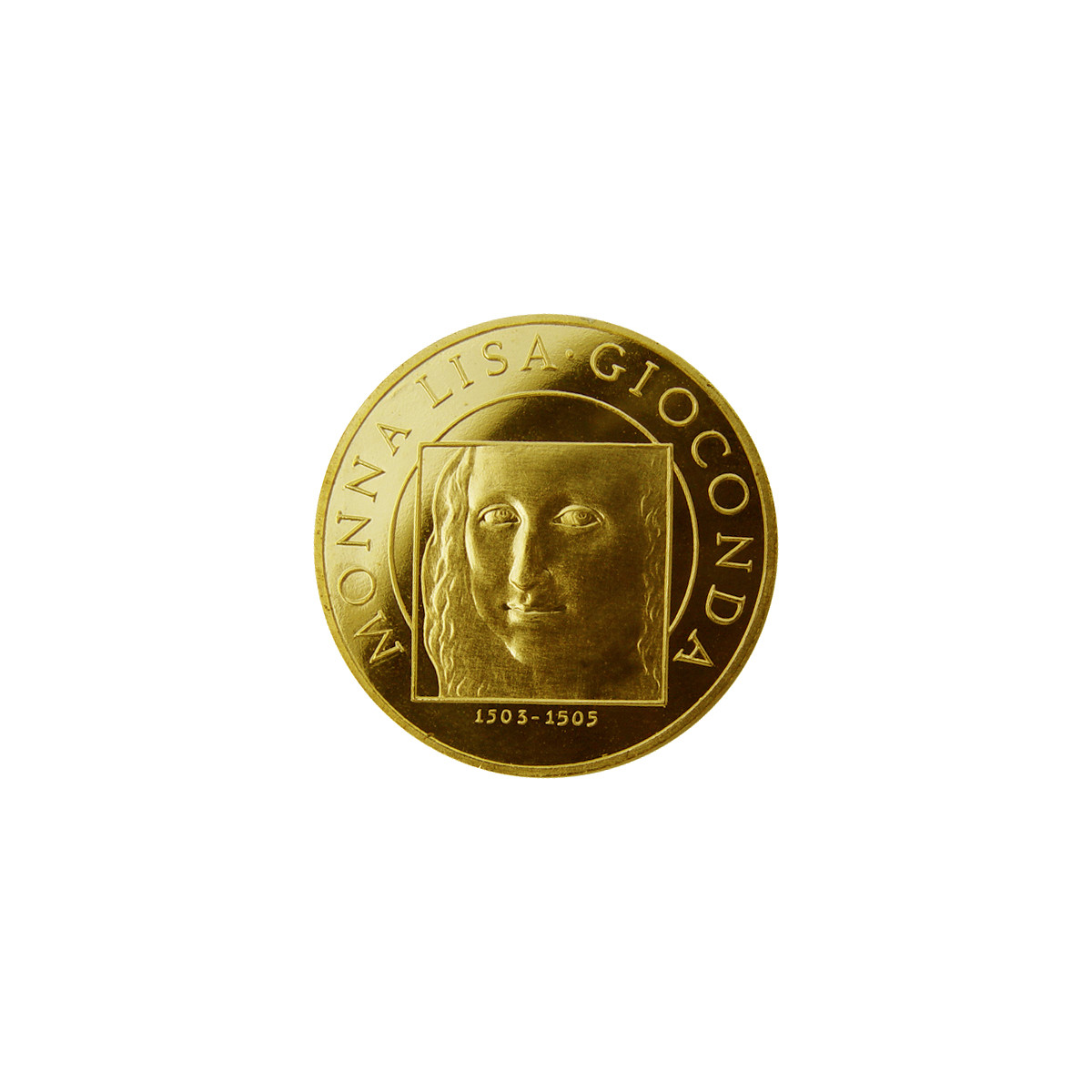 Gold medal in the size of 2-ducat (7g) Leonardo da Vinci and Monna Lisa in purity Au 986/1000.