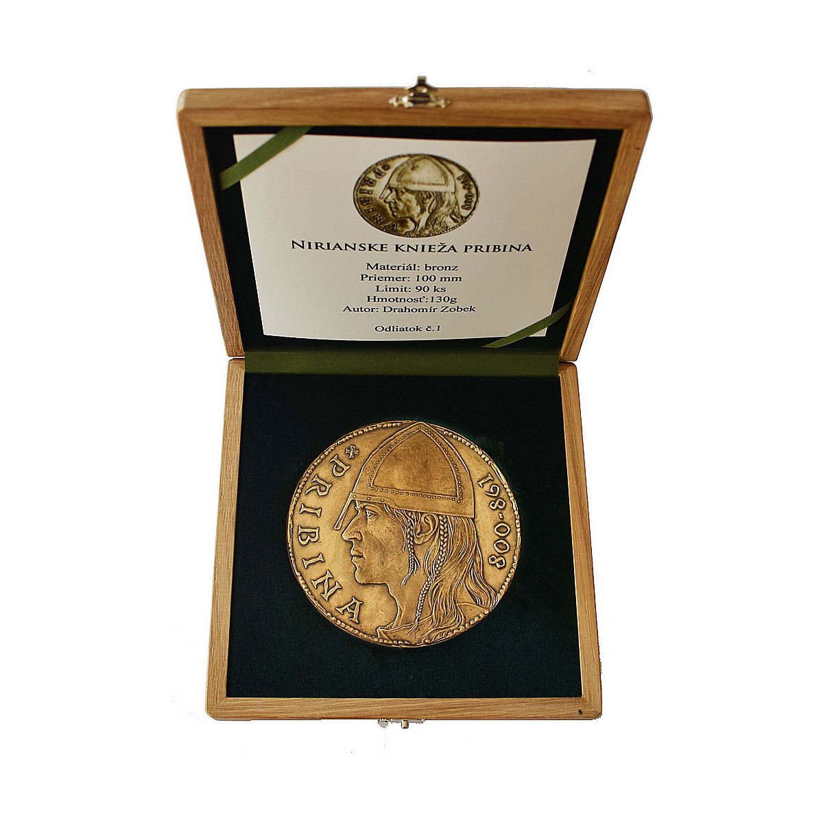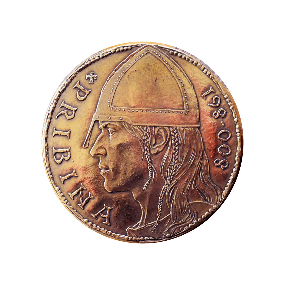 Author's cast bronze Pribina medal in size 100 mm, in patina design.