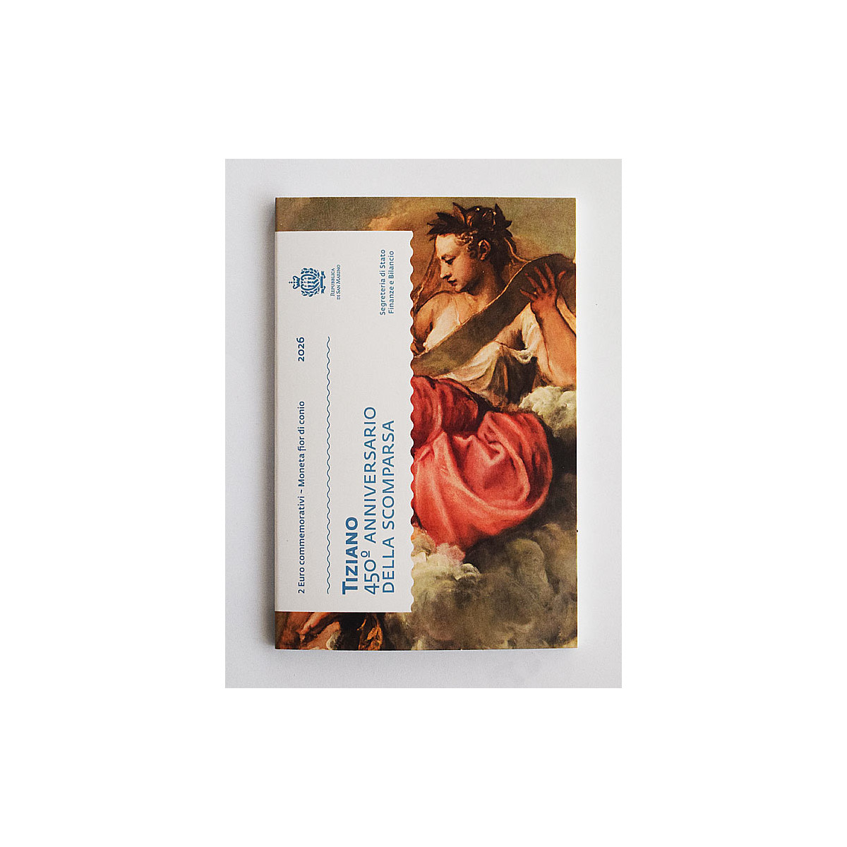 Commemorative 2 Euro coin of San Marino, issued in 2026. This collector's euro coin was issued to mark the 450th anniversary of the death of Titian Vecelli, one of the most important Italian Renaissance painters of the 16th century.