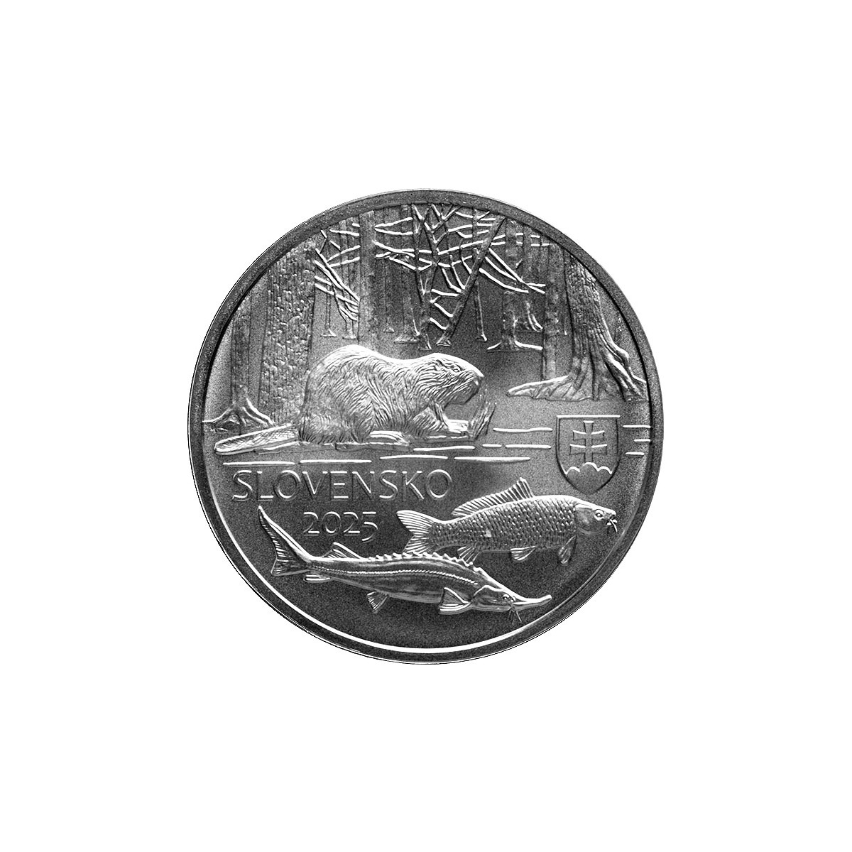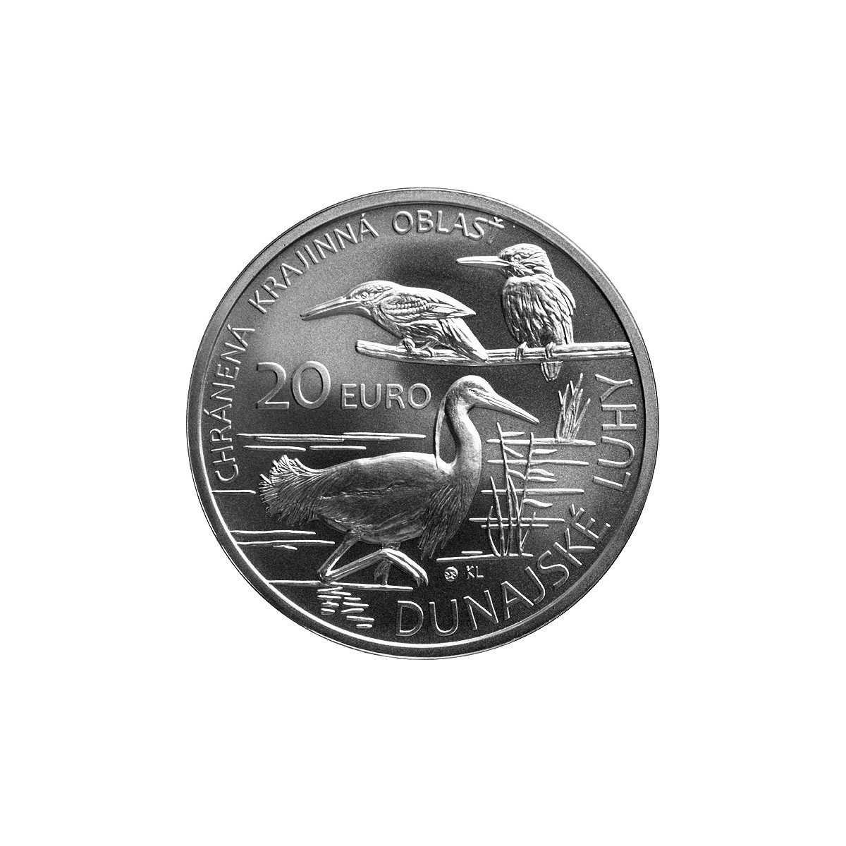 Silver commemorative collector's euro coin of Slovakia r. 2025 with a face value of 20 Euros issued with the motif of the Dunajské luhy Protected Landscape Area, standard quality.