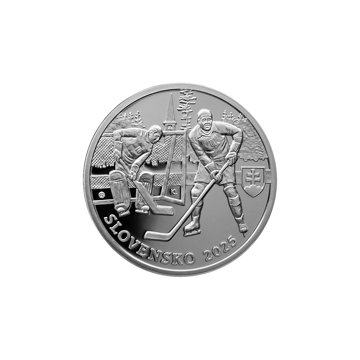 Silver collector's euro coin of Slovakia r. 2025 with a face value of 10 EURO, issued on the occasion of the 100th anniversary of the European Hockey Championships as part of the first international sports tournament in the Slovak Republic.