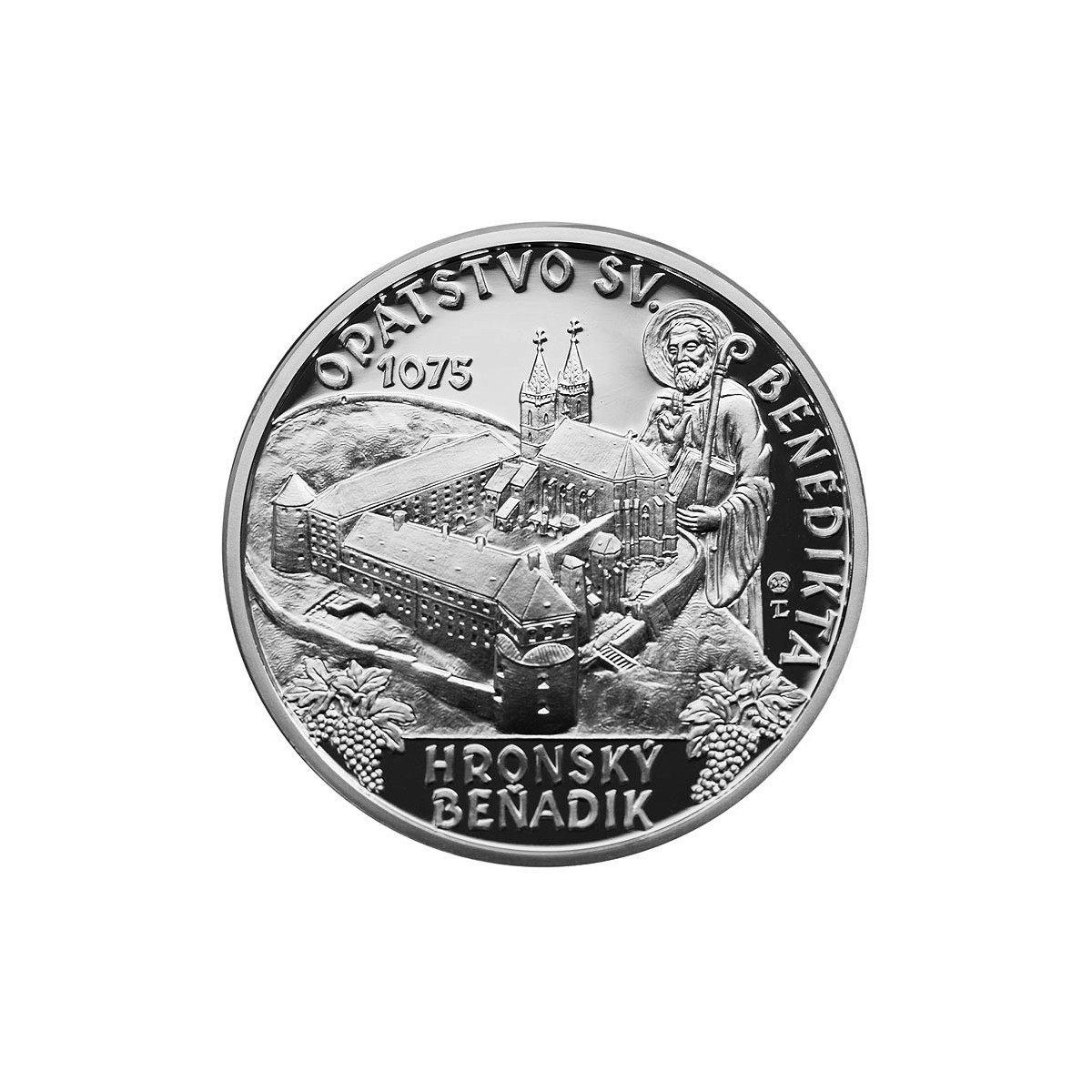 Slovak silver collector's euro coin from 2025 with a nominal value of 10 EURO, issued on the occasion of the anniversary of the founding of the Benedictine Abbey in Hronské Beňadik.