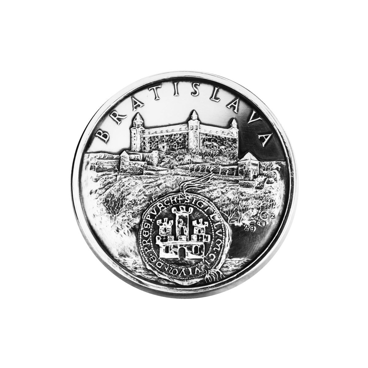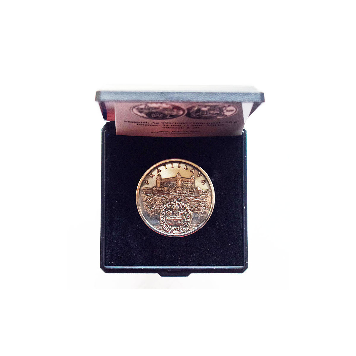 Silver medal with the motif of Bratislava in patina old silver with a purity of Ag 999/1000.