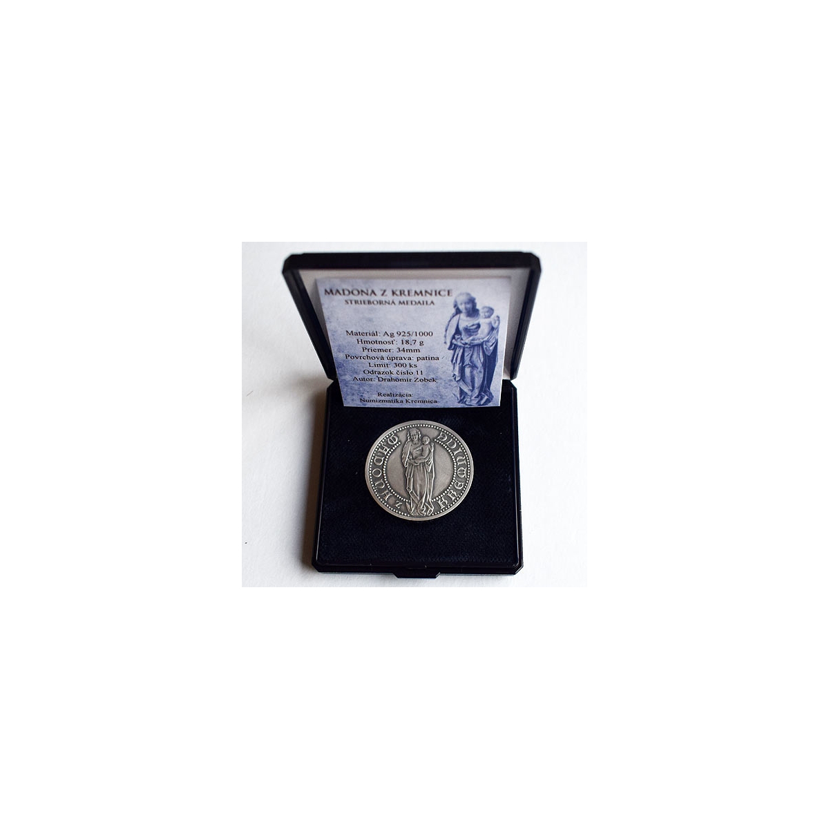 Silver medal Madonna with Jesus from Kremnica in patina design.
