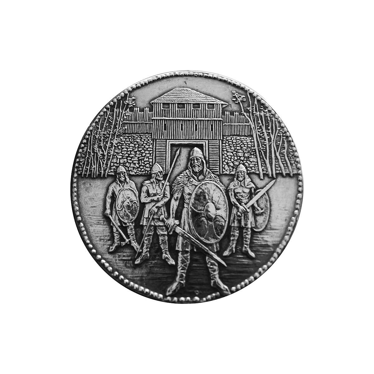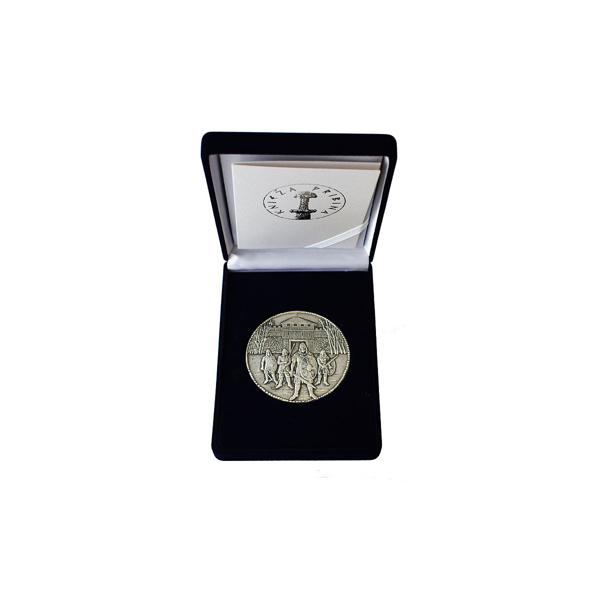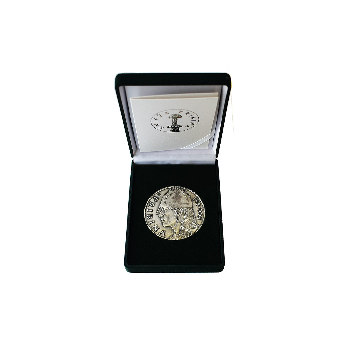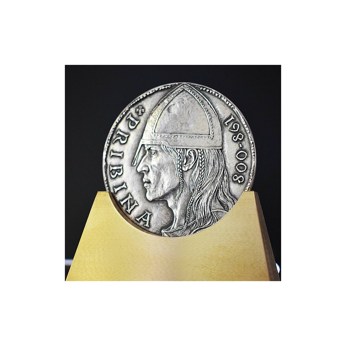 Silver medal with a purity of 999/1000 Nitra Prince Pribina with an old silver surface finish, weighing 62 g (2 ounces).