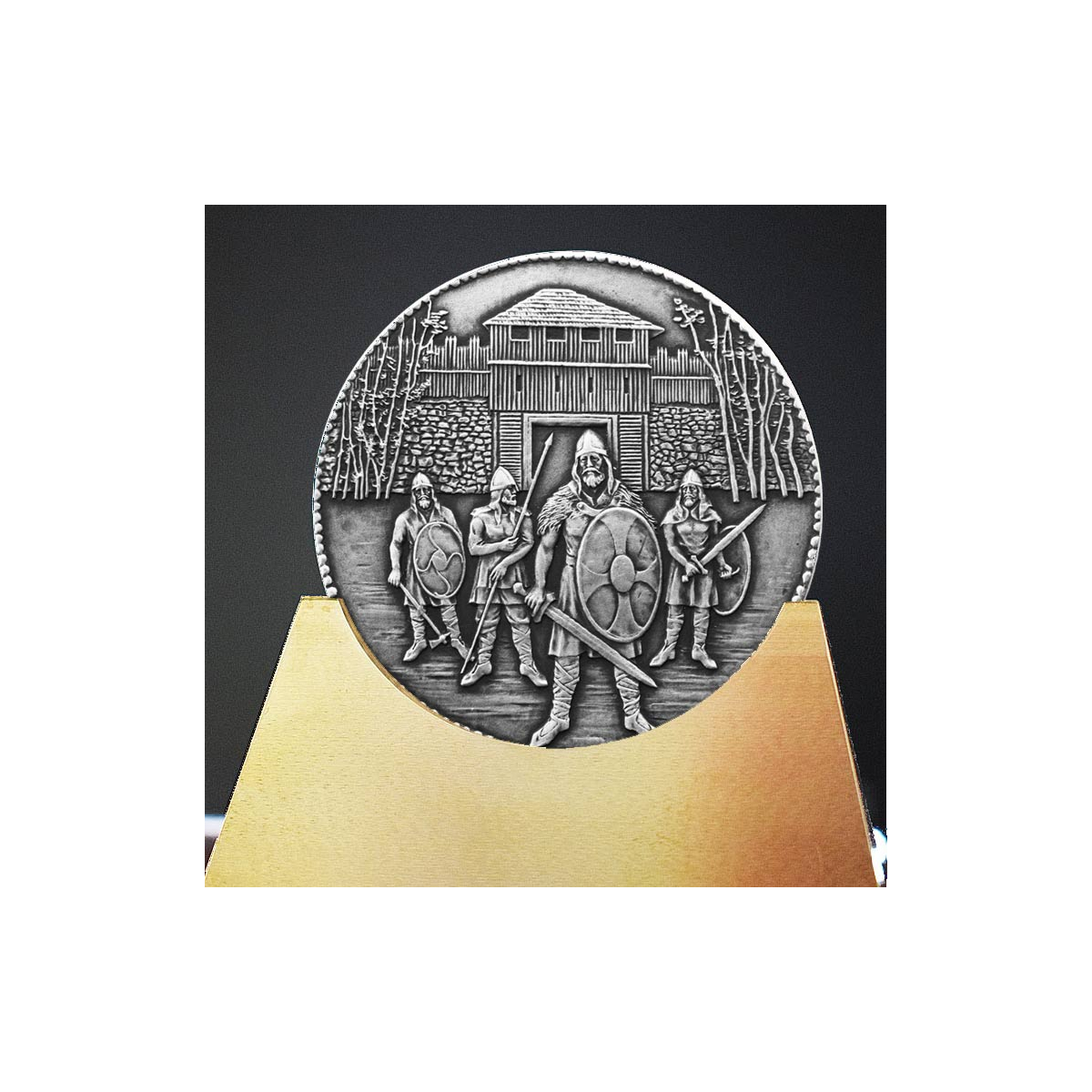 Surface finish: The old silver effect is a special surface finish in which the shiny shine of silver is preserved and at the same time the relief is highlighted with a dark patina. For the desired effect, the manual patination and polishing of each medal is more time-consuming and technically demanding.