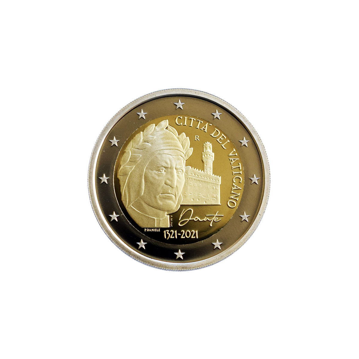 Commemorative 2 Euro coin of the Vatican, issued in 2021. This collector euro coin was issued on the occasion of the 700th anniversary of Dante Alighieri's death, Proof quality.