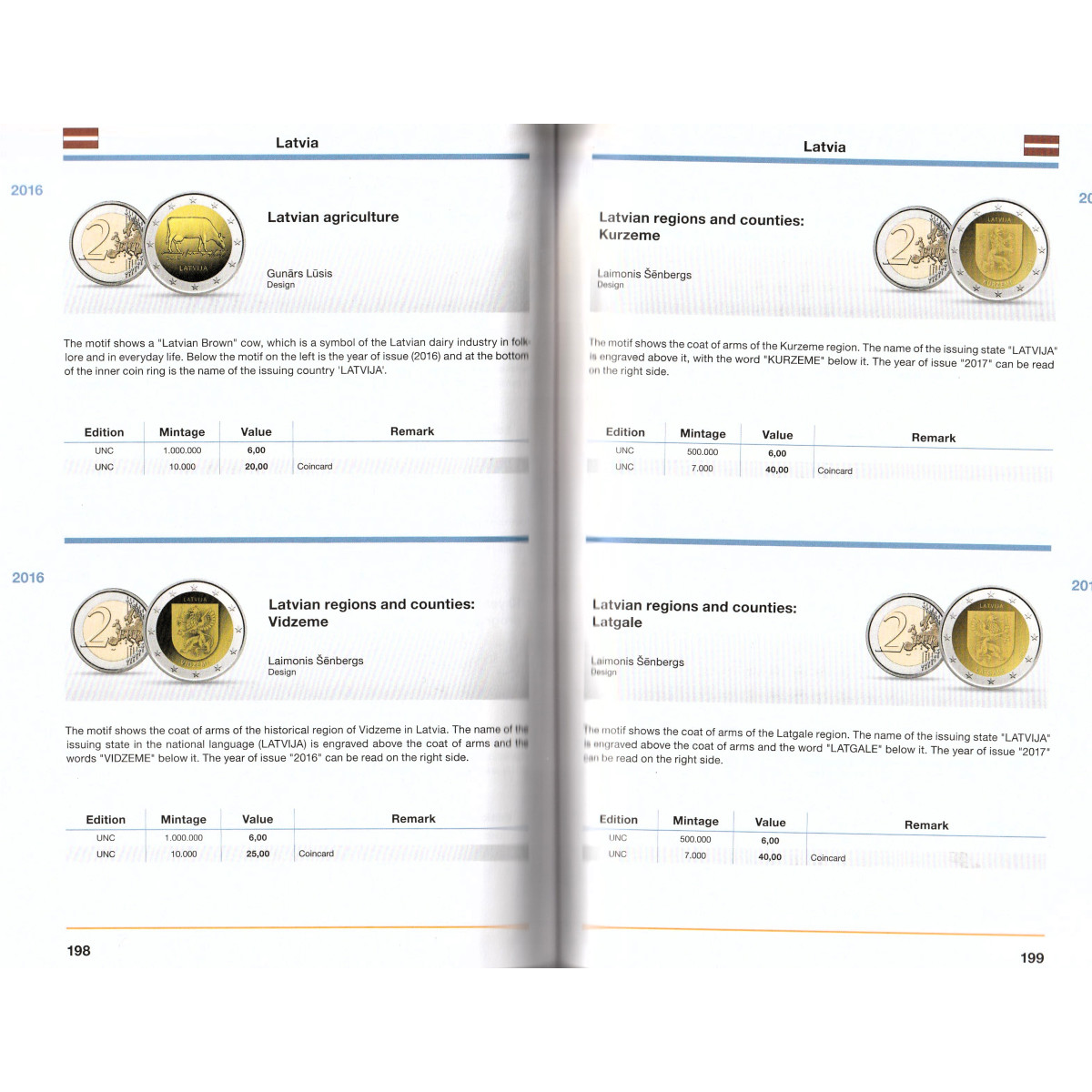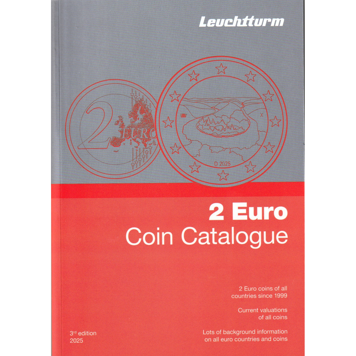 V katalógu nájdete spracovanú každú krajinu eurozóny, t.j. informačné údaje o krajine, dizajny 2 Euro mincí, kvalitu vydaných mincí, limit a ich hodnotu.