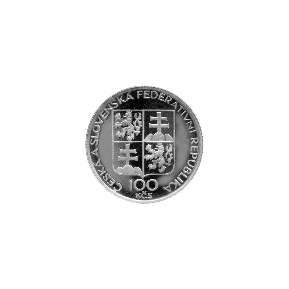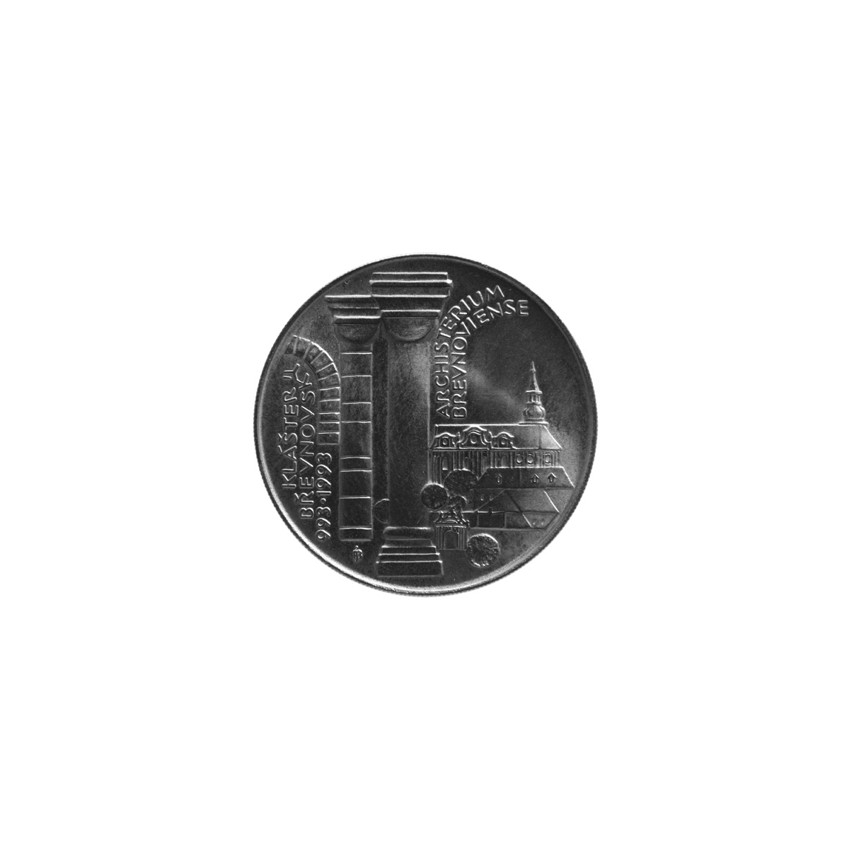 Pamätná zberateľská minca z roku 1993 s nominálnou hodnotou 100 Kčs vydaná pri príležitosti 100. výročia založenia Kláštora Břenovského, v bežnom vyhotovení.