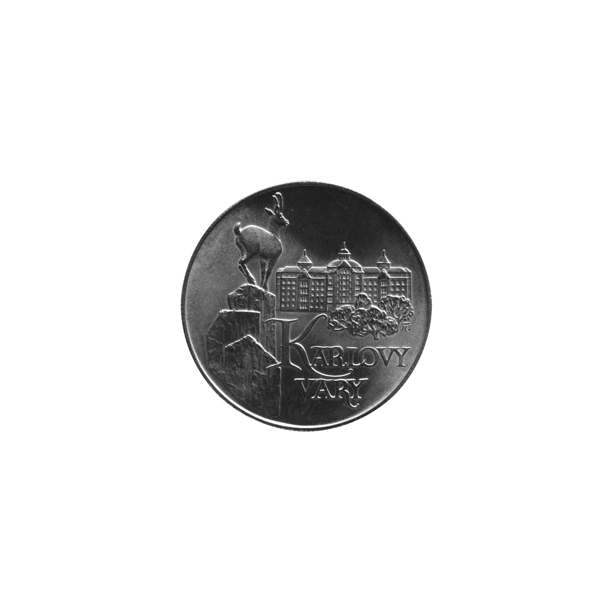 Pamätná zberateľská strieborná minca Československa z roku 1991 s nominálnou hodnotou 50 Kčs vydaná s motívom Karlovy Vary, v bežnom vyhotovení.