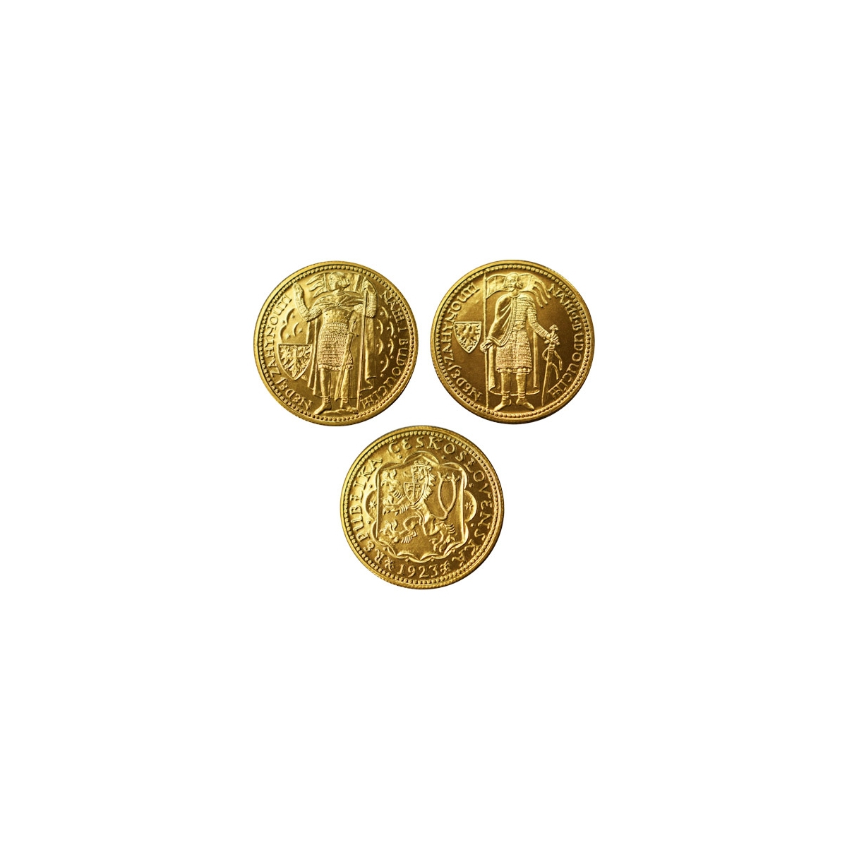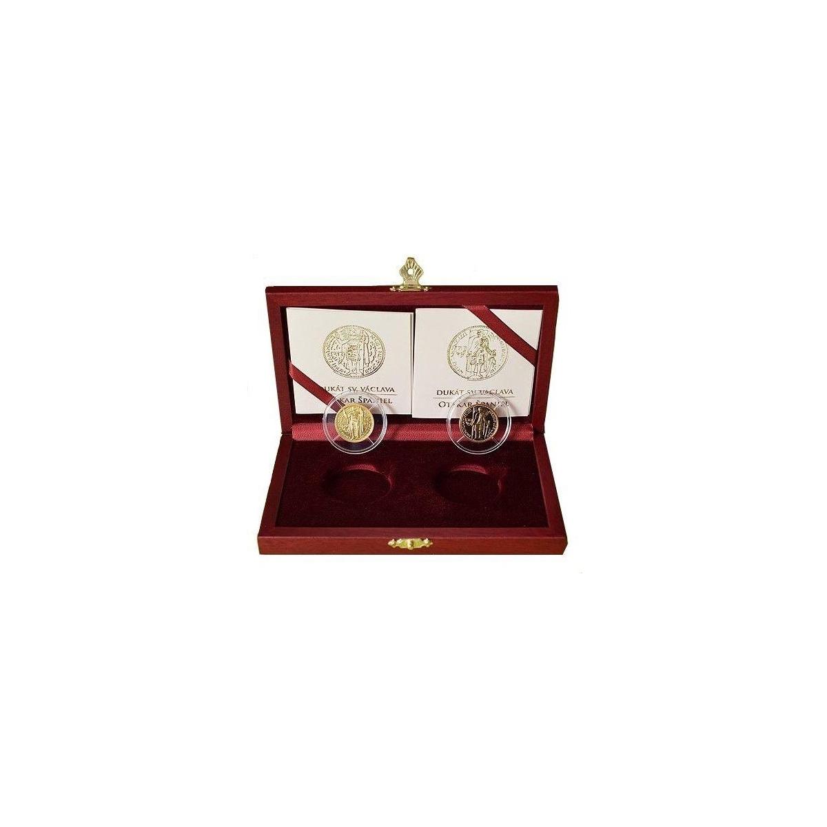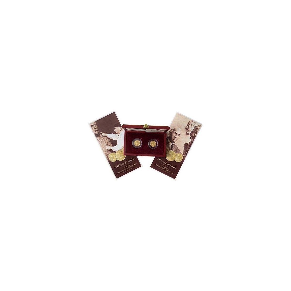 Zberateľské zlaté dukáty v parametroch 2x3,5g s motívom Súťažných návrhov na prvé Československé dukáty z roku 1923 od autora Otakara Španiela - sochára, medailéra, rezbára a pedagóga, s označením archívna razba.