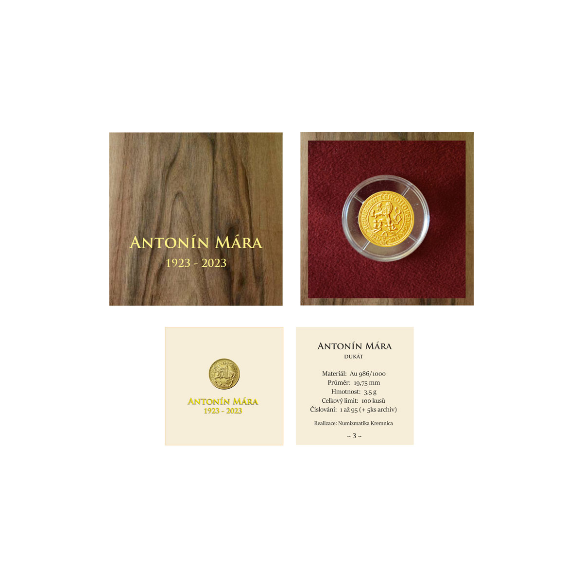 Zlatá razba venovaná jednému z najkrajších návrhov na československé dukáty od autora Antonína Máru venovaná ku 100. výročiu začatia razby svätováclavských dukátov vo veľkosti 1-dukátu s výročným letopočtom "1923-2023".