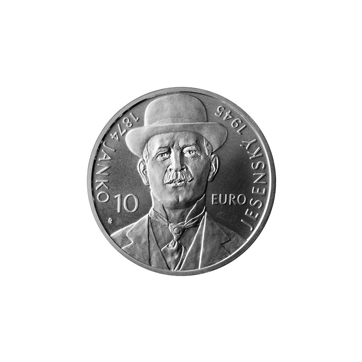 Strieborná zberateľská eurominca Slovenska r. 2024 s nominálnou hodnotou 10 EURO vydaná pri príležitosti 150. výročia narodenia Janka Jesenského, známeho slovenského prozaika.