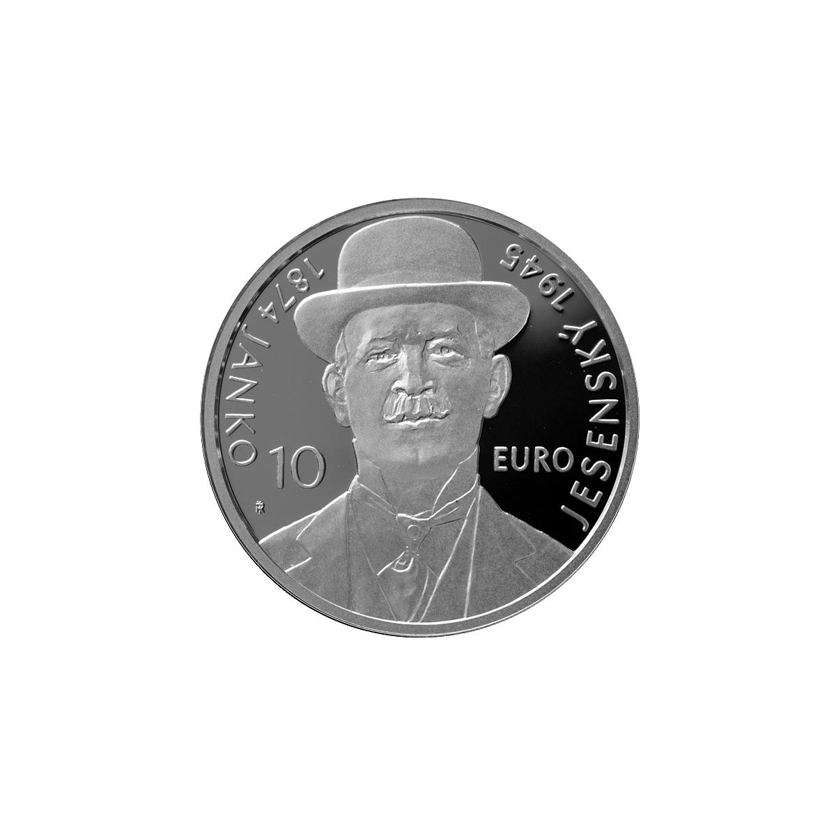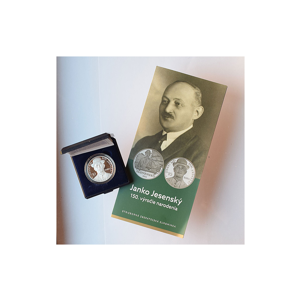 Strieborná zberateľská eurominca Slovenska r. 2024 s nominálnou hodnotou 10 EURO vydaná pri príležitosti 150. výročia narodenia Janka Jesenského, známeho slovenského prozaika.