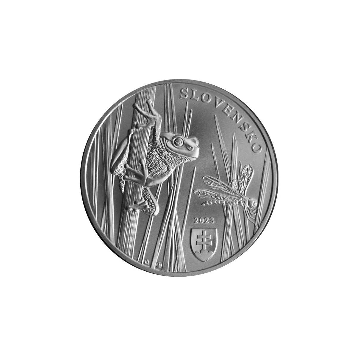 Na líci zberateľskej euromince je vyobrazená rosnička zelená a vážka v prostredí vodnej trstiny.