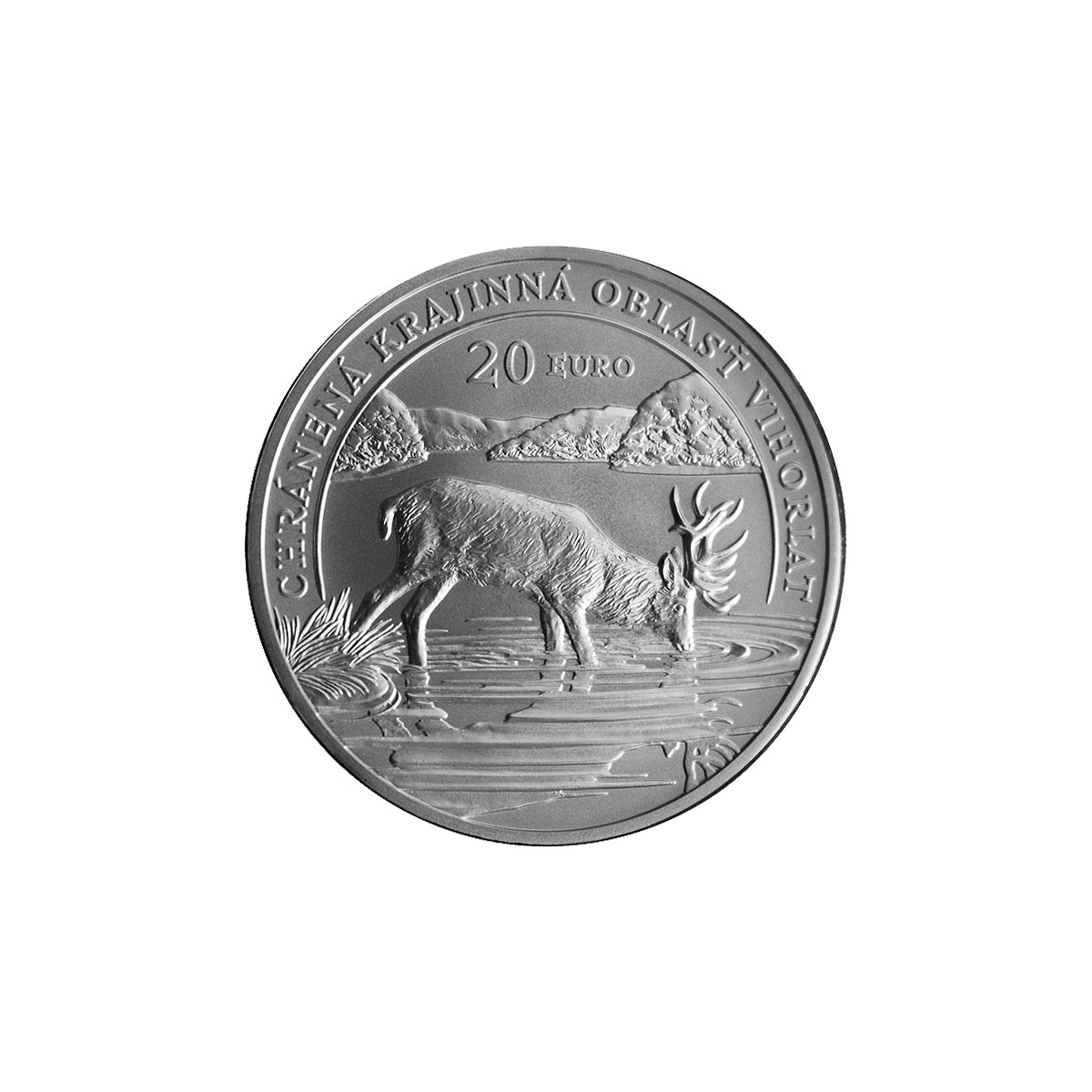 Strieborná pamätná zberateľská eurominca Slovenska r. 2023 s nominálnou hodnotou 20 Euro vydaná s motívom CHKO Vihorlat.