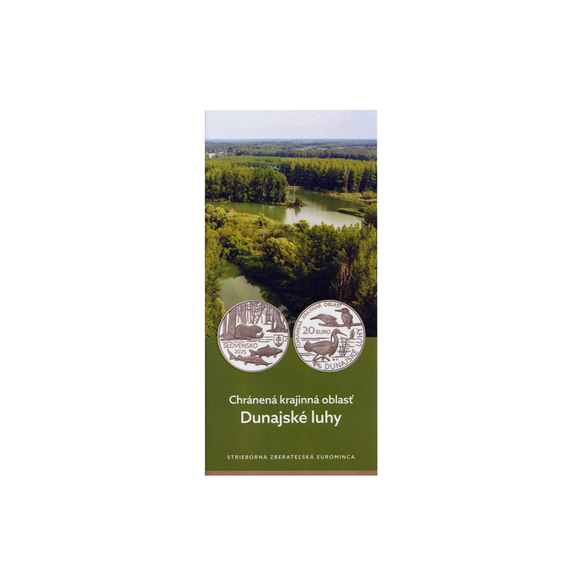 Strieborná pamätná zberateľská eurominca Slovenska r. 2025 s nominálnou hodnotou 20 Euro vydaná s motívom CHKO Dunajské luhy, bežná kvalita.