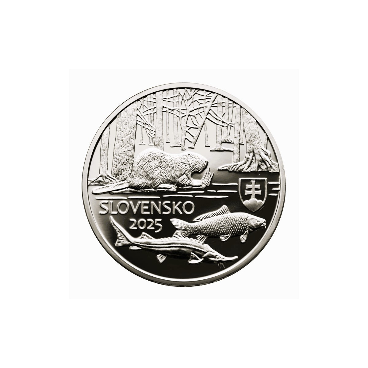 Strieborná pamätná zberateľská eurominca Slovenska r. 2025 s nominálnou hodnotou 20 Euro vydaná s motívom CHKO Dunajské luhy, kvalita Proof.