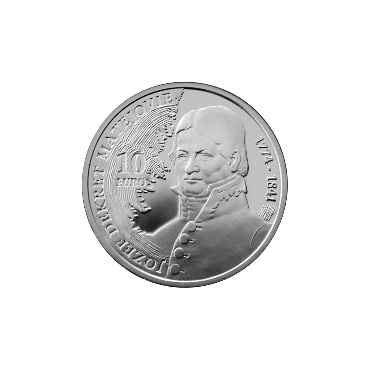 Strieborná zberateľská eurominca Slovenska r. 2024 s nominálnou hodnotou 10 EURO vydaná pri príležitosti 250. výročia narodenia Jozefa Dekreta Matejovie, jedného z najuznávanejších lesníckych odborníkov, v proof vyhotovení