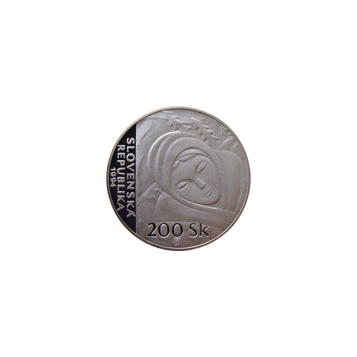 Pamätná strieborná minca Slovenska r. 1994 v nominálnej hodnote 200 Sk vydaná pri príležitosti 100. výročia narodenia Janka Alexyho v prevedení proof.