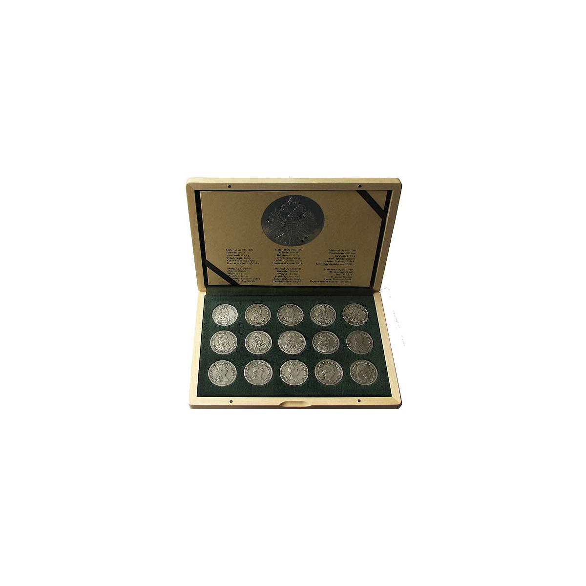 Sada mincí je zložená z pätnástich strieborných miniatúr toliarov, ktoré si môžete na našom web-shope kúpiť aj jednotlivo.