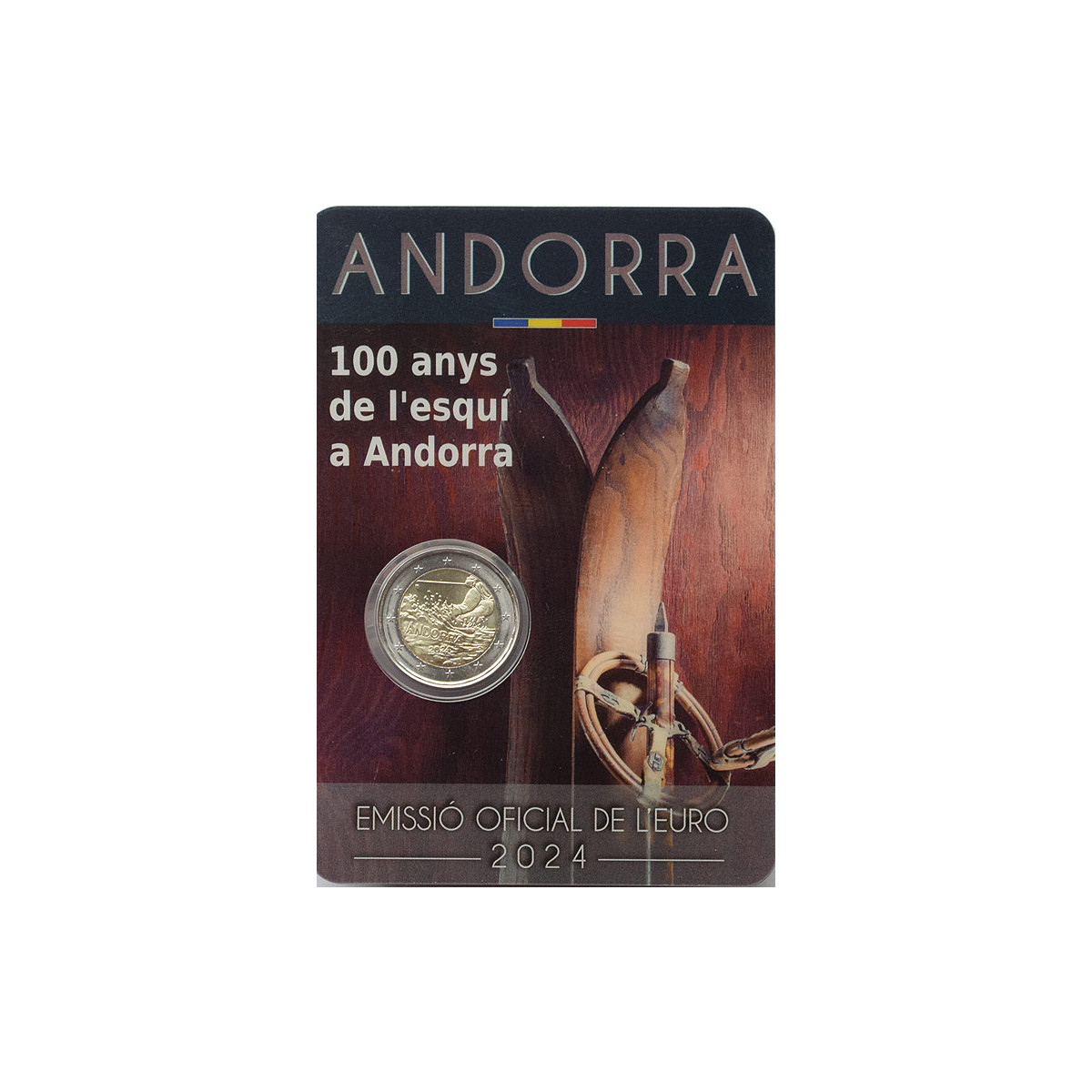 Pamätná 2 Euro minca Andorry, emitovaná v roku 2024. Táto zberateľská eurominca bola vydaná pri príležitosti 100. výročia lyžovania v Andorre.