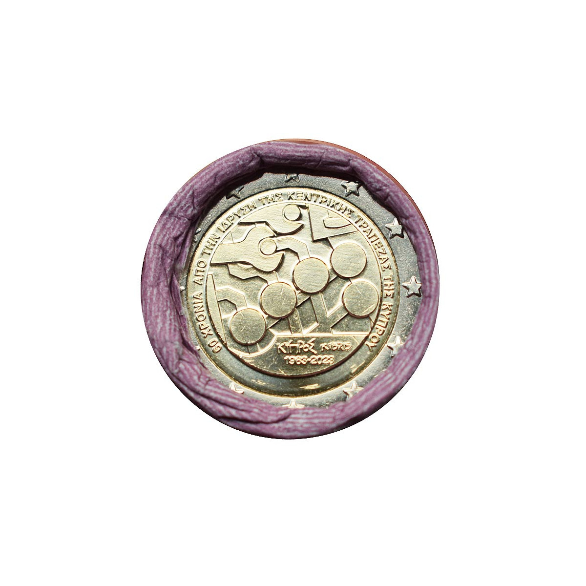 Pamätná 2 Euro minca Cyprusu, emitovaná v roku 2023. Táto zberateľská eurominca bola vydaná pri príležitosti 60. výročia založenia Centrálnej banky.