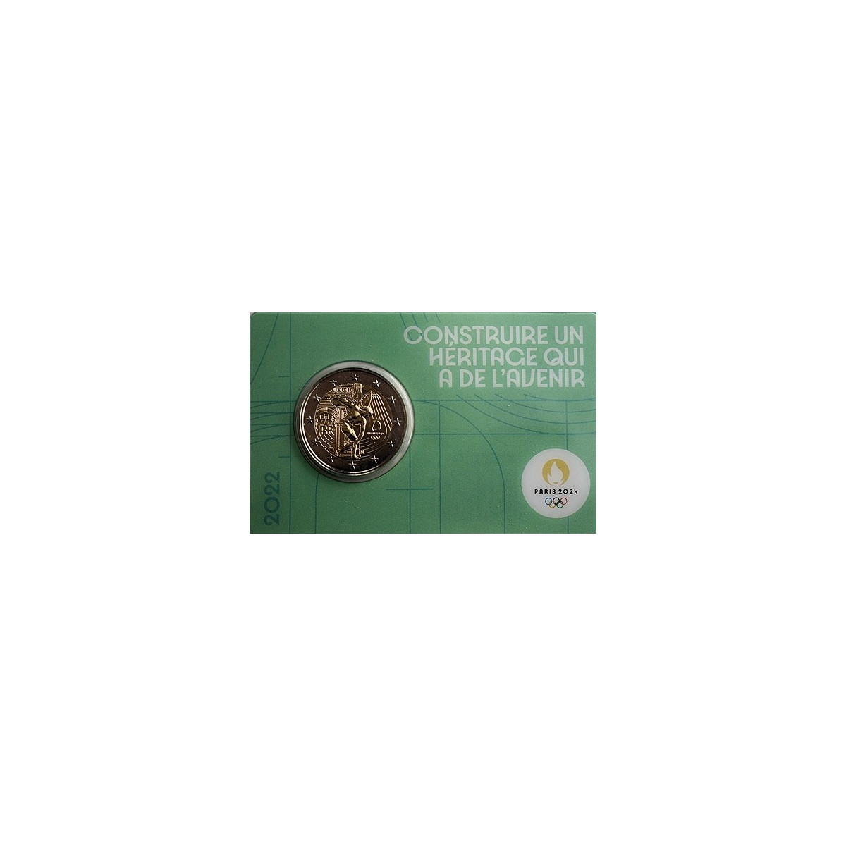 Pamätná 2 Euro minca Francúzska, emitovaná v roku 2022. Táto zberateľská eurominca bola vydaná pri príležitosti konania letných olympijských hier vo Francúzsku v roku 2024.