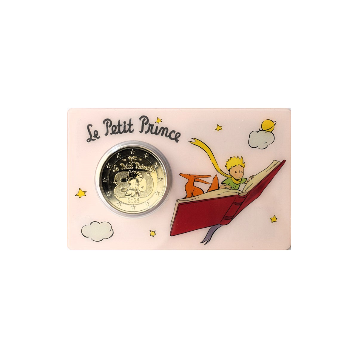 Pamätná 2 Euro minca Francúzska, emitovaná v roku 2026. Táto zberateľská eurominca bola vydaná pri príležitosti 80. výročia vydania Malého princa od Antoina Saint-Exupery v mincovej karte s dizajnom Malý princ a líška na knihe.