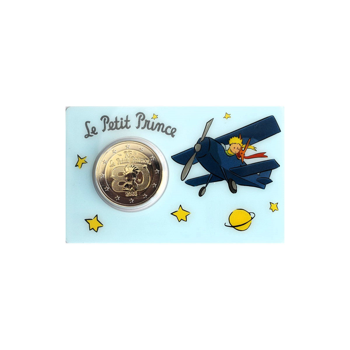 Pamätná 2 Euro minca Francúzska, emitovaná v roku 2026. Táto zberateľská eurominca bola vydaná pri príležitosti 80. výročia vydania Malého princa od Antoina Saint-Exupery v mincovej karte s dizajnom Malý princ v lietadle.