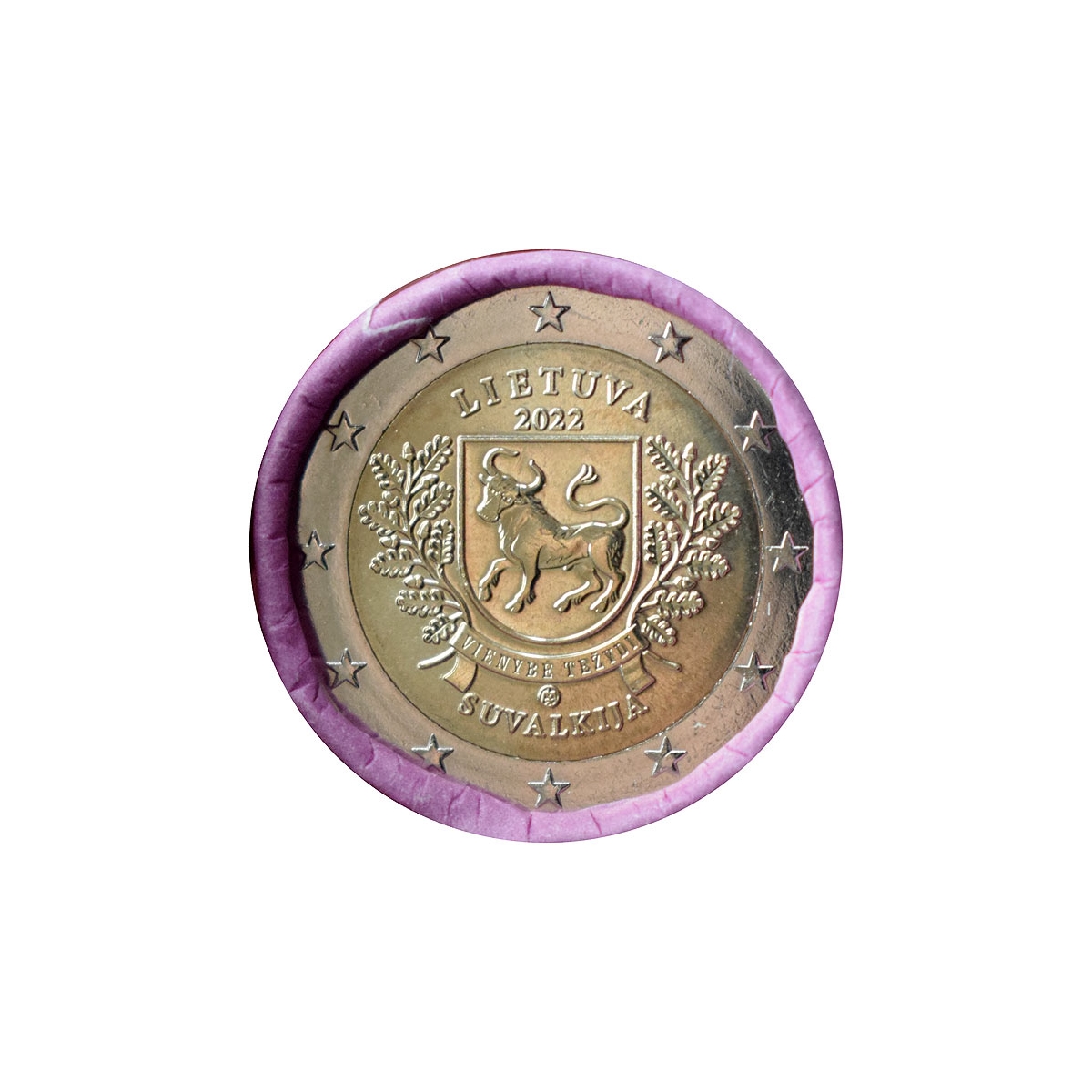 Pamätná 2 Euro minca Litvy, emitovaná v roku 2022. Táto zberateľská eurominca bola vydaná s motívom etnografického regiónu Suvalkija.