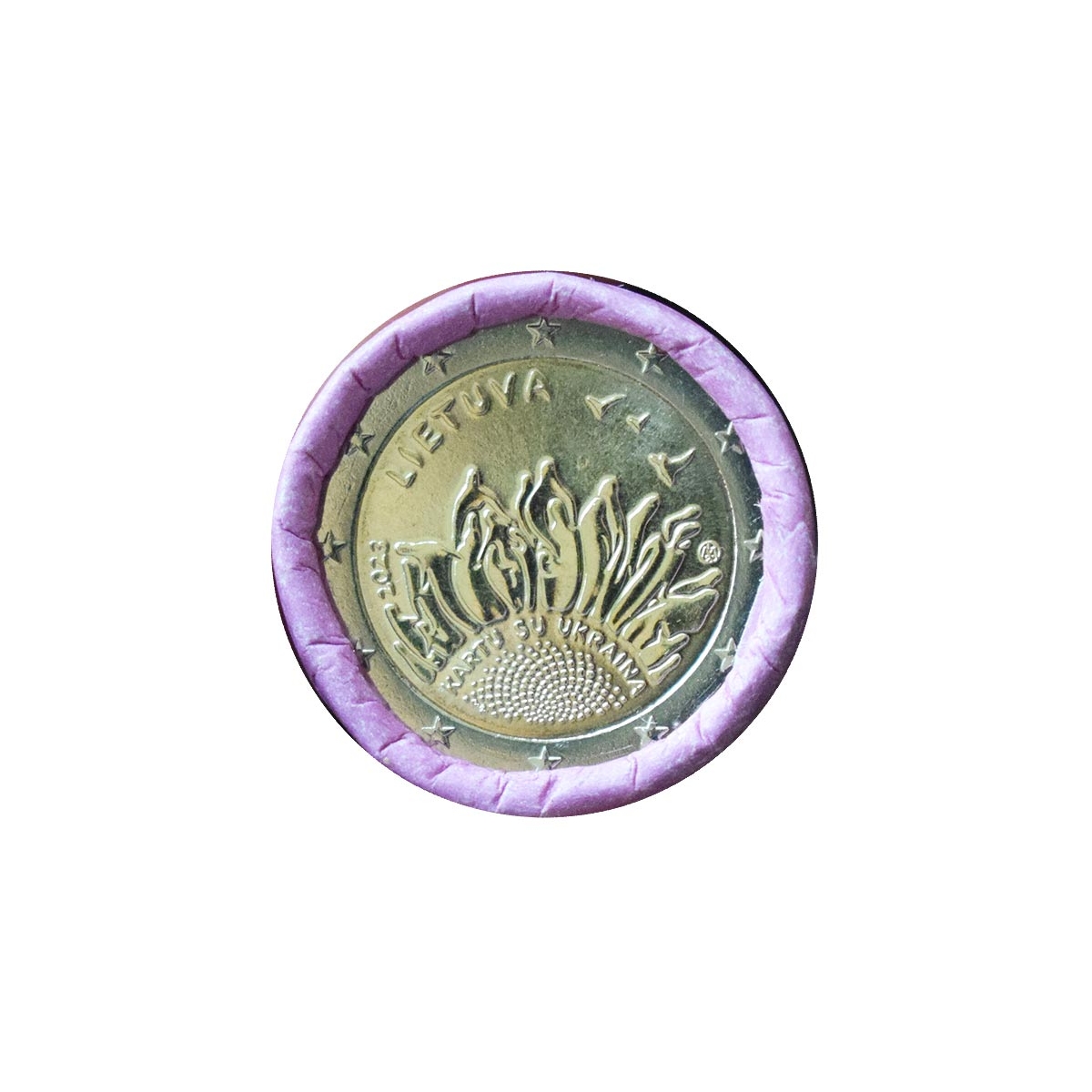 Pamätná 2 Euro minca Litvy, emitovaná v roku 2023. Táto zberateľská eurominca je venovaná Ukrajine a európskej solidarite na podporu tejto krajiny.