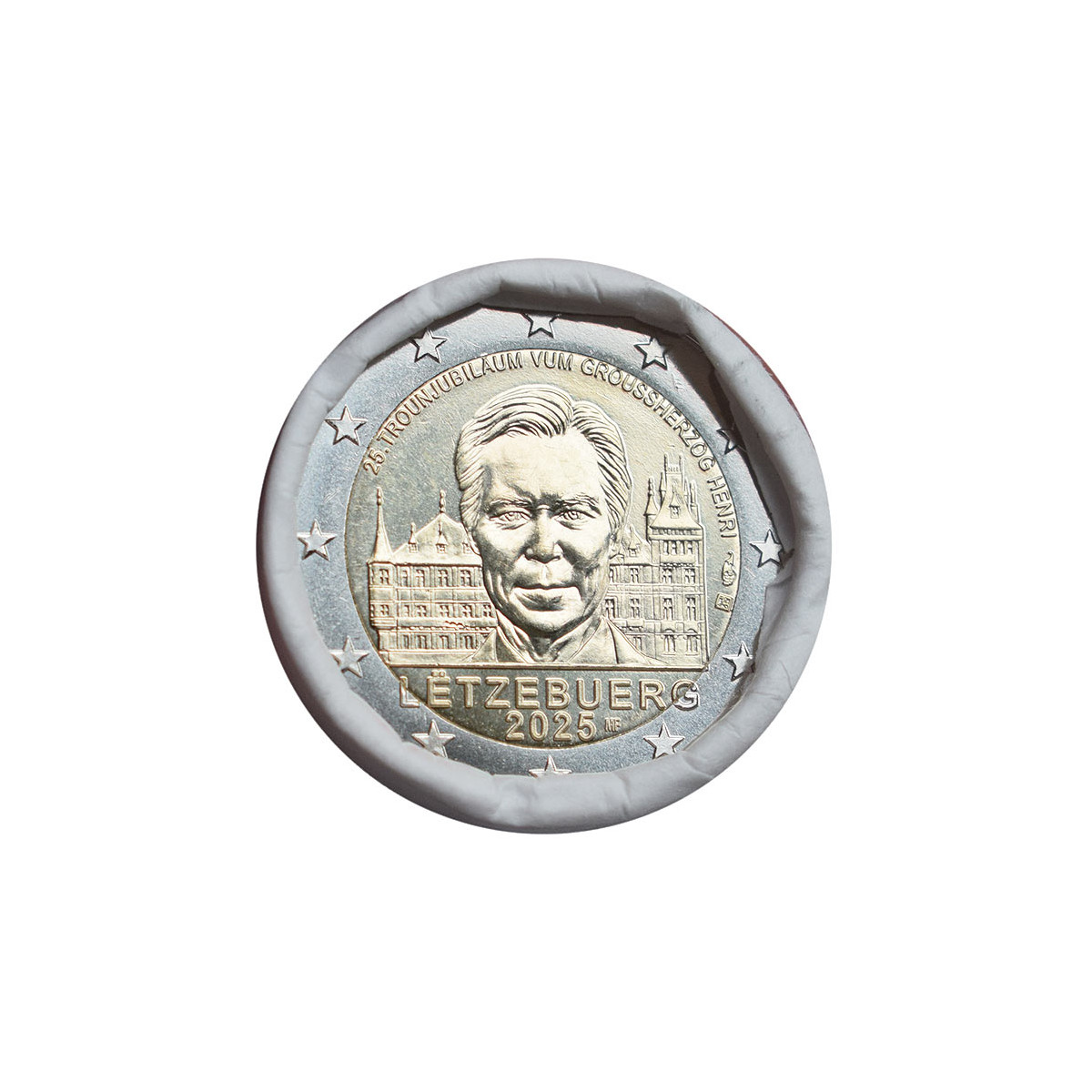 Pamätná 2 Euro minca Luxemburska, emitovaná v roku 2025. Táto zberateľská eurominca bola vydaná pri príležitosti 25. výročia nástupu Veľkovojvodu Henriho na luxemburský trón.