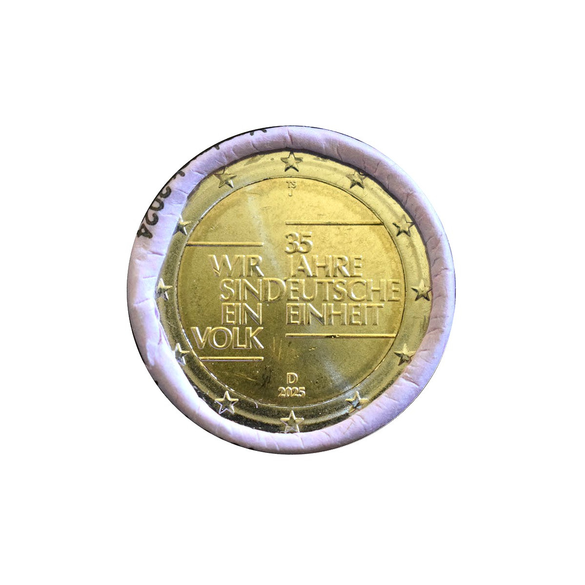 Pamätná 2 Euro minca Nemecka razená v mincovni Hamburg (J), emitovaná v roku 2025. Táto zberateľská eurominca bola vydaná pri príležitosti 35. výročia znovuzjednotenia Nemecka.