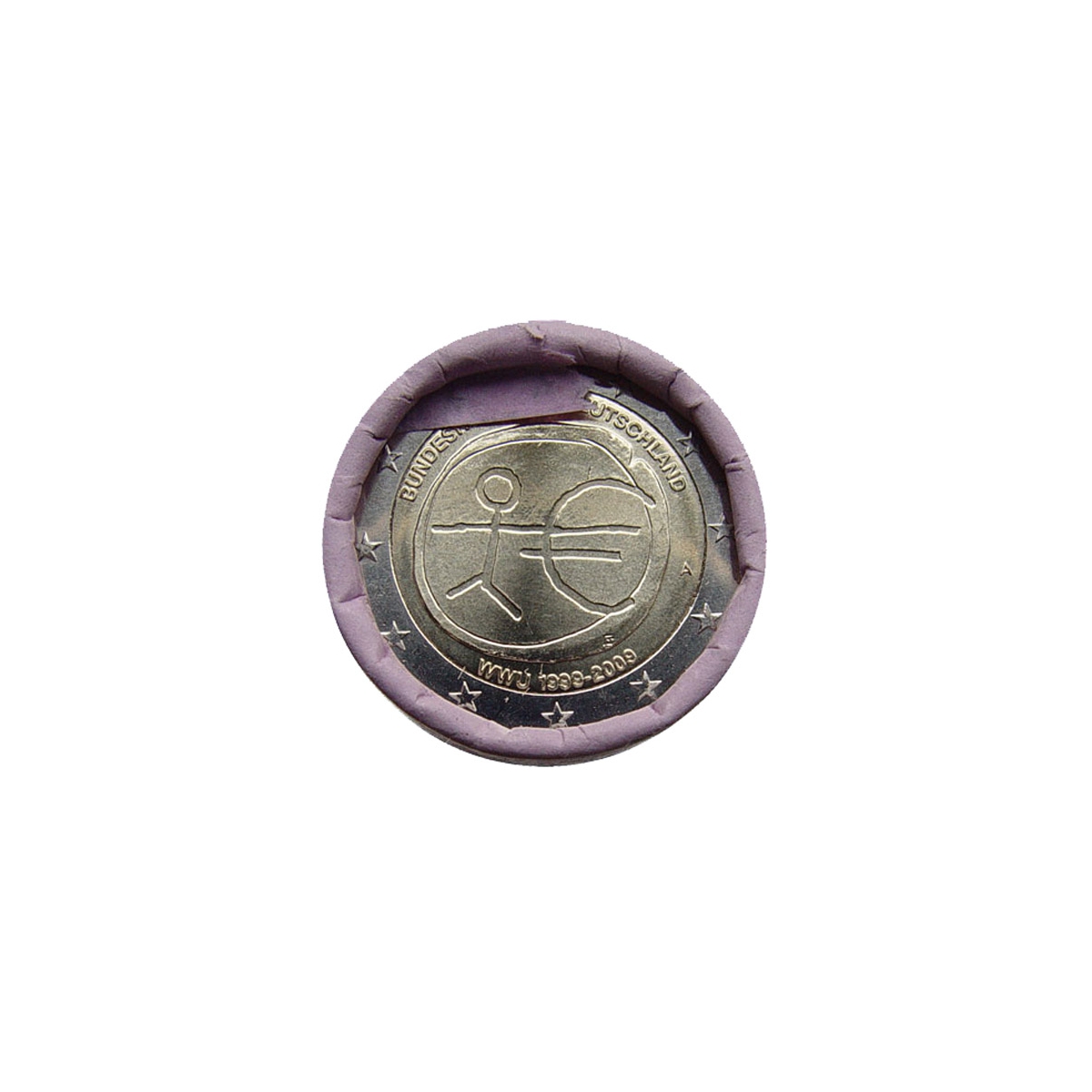 Pamätná 2 Euro minca Nemecka (A), emitovaná v roku 2009. Táto zberateľská eurominca bola vydaná pri príležitosti 10. výročia Hospodárskej a menovej únie.