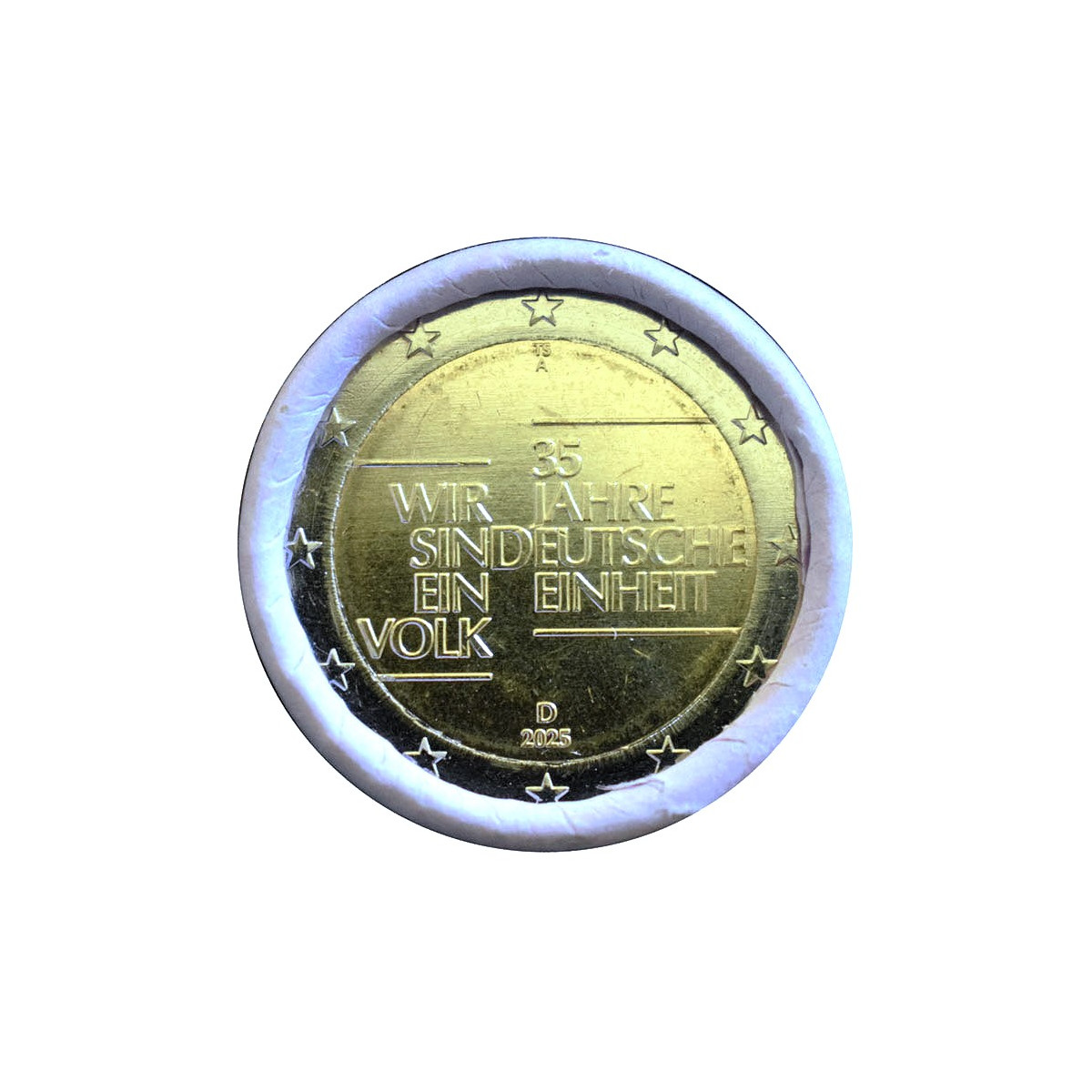 Pamätná 2 Euro minca Nemecka razená v mincovni Berlín (A), emitovaná v roku 2025. Táto zberateľská eurominca bola vydaná pri príležitosti 35. výročia znovuzjednotenia Nemecka.
