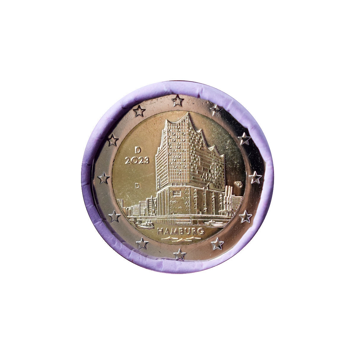 Pamätná 2 Euro minca Nemecka (D), emitovaná v roku 2023. Táto zberateľská eurominca bola vydaná s motívom Hamburg.