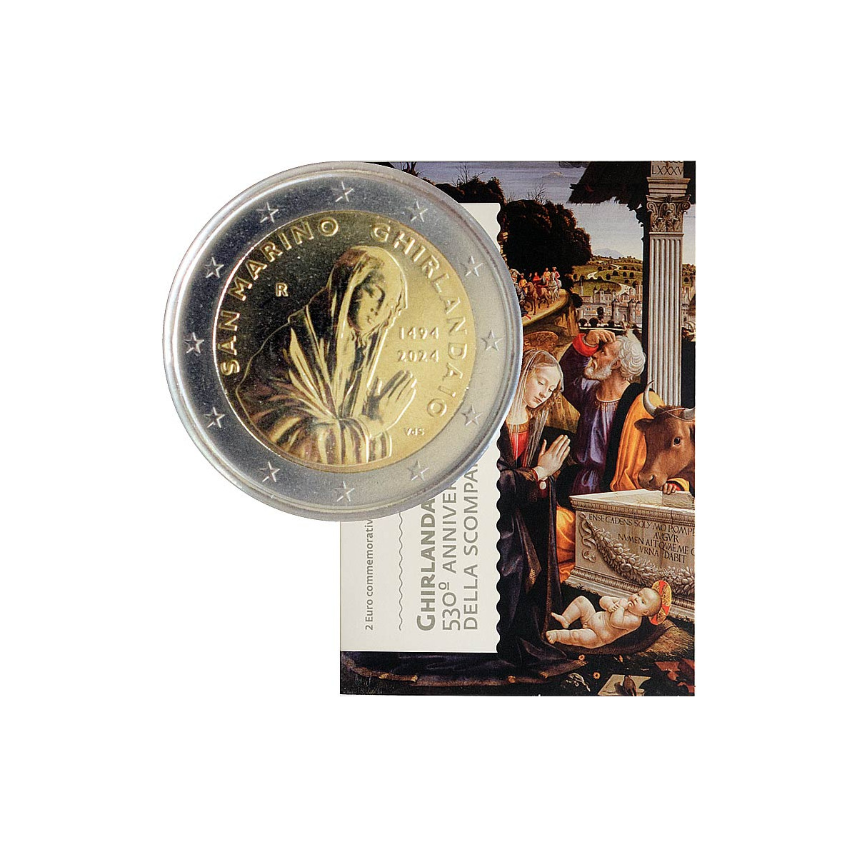 Pamätná 2 Euro minca San Marína, emitovaná v roku 2024. Táto zberateľská eurominca bola vydaná pri príležitosti 530. výročia smrti renesančného maliara Domenica Ghirlandaia, jedného z najvplyvnejších predstaviteľov talianskej renesancie.