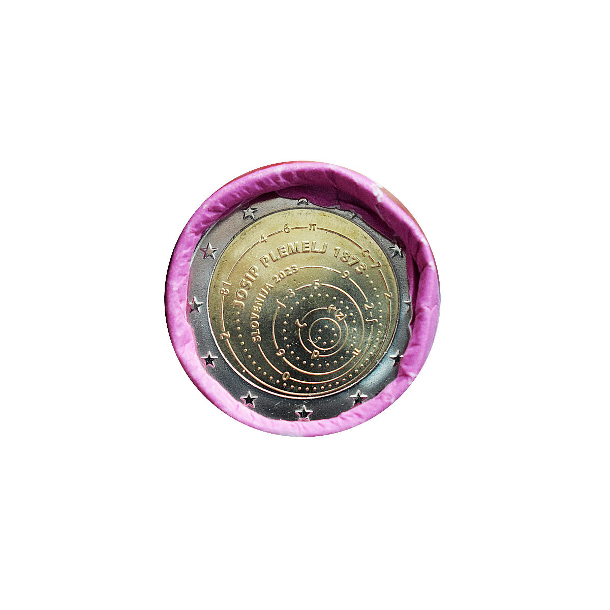 Pamätná 2 Euro minca Slovinska, emitovaná v roku 2023. Táto zberateľská eurominca bola vydaná pri príležitosti 150. výročia narodenia slovinského matematika Josipa Plemelja.