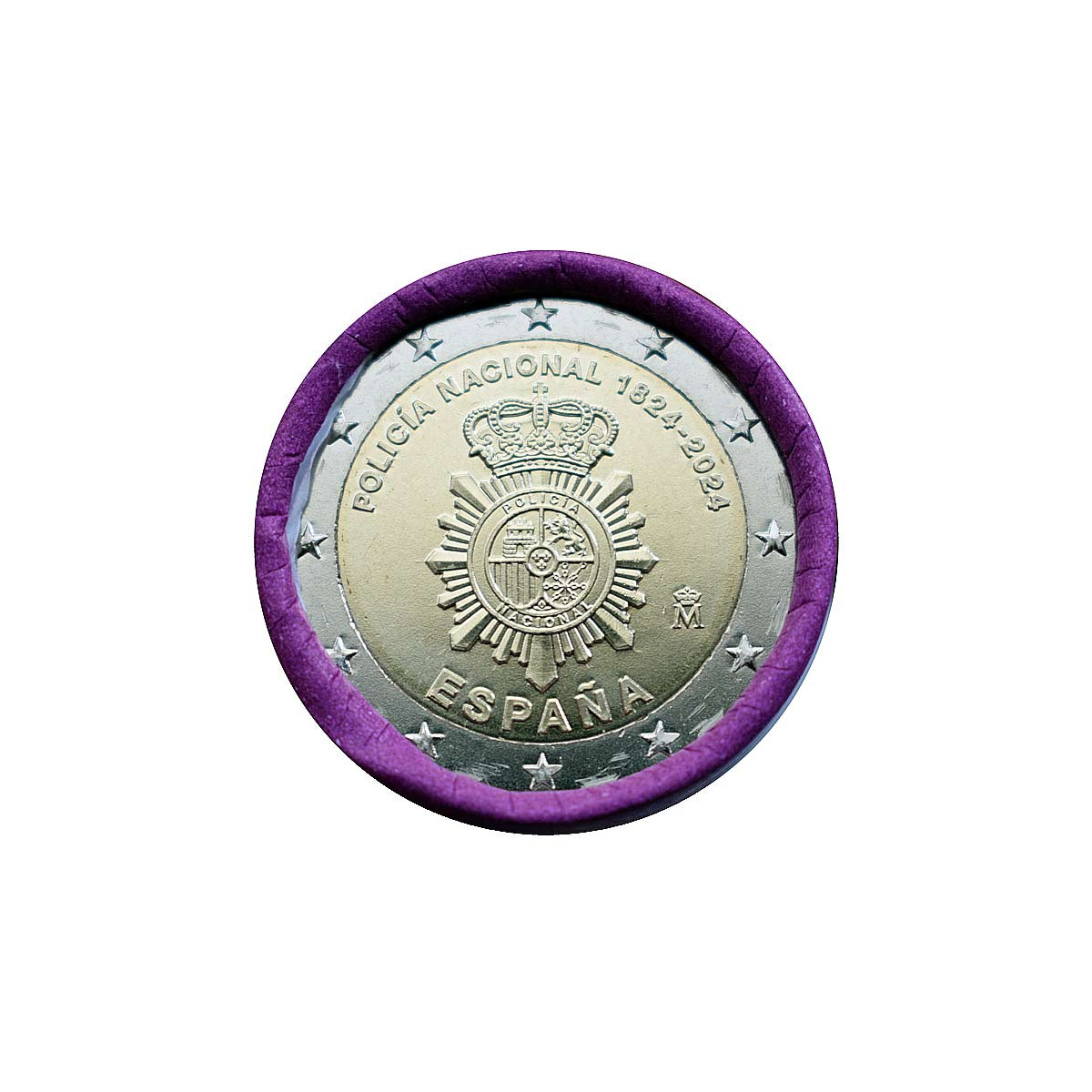 Motívom euromince je vyobrazený znak Národného policajného zboru s nápisom "POLICIA NACIONAL 1824-2024".