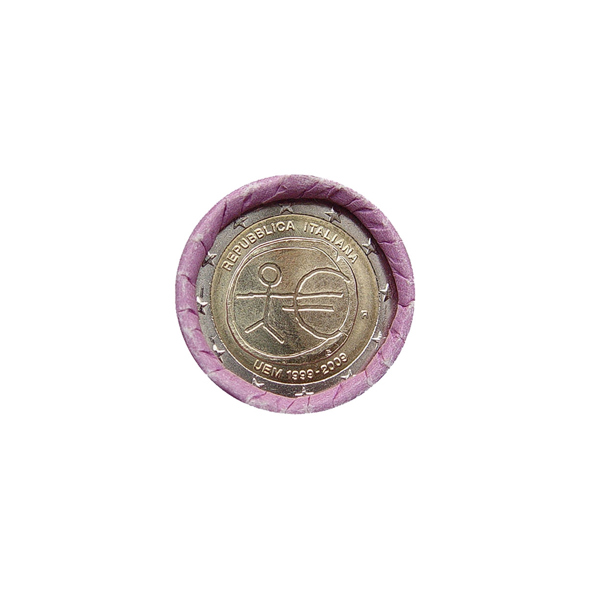 Pamätná 2 Euro minca Talianska, emitovaná v roku 2009. Táto zberateľská eurominca bola vydaná pri príležitosti 10. výročia Hospodárskej a menovej únie.