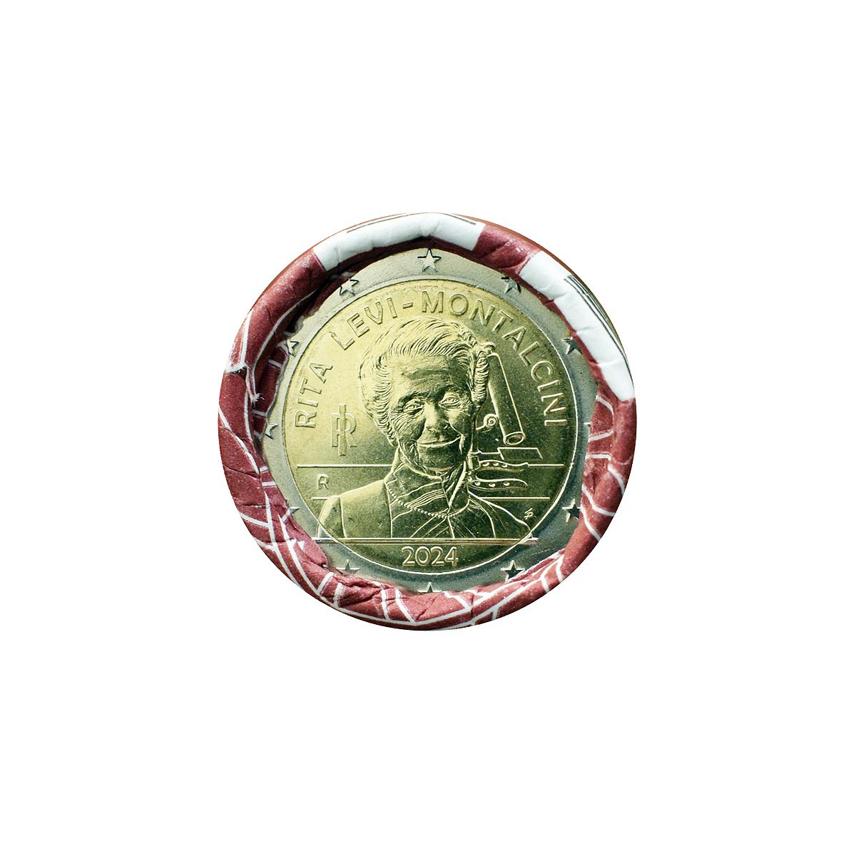 Pamätná 2 Euro minca Talianska, emitovaná v roku 2024. Táto zberateľská eurominca bola vydaná na počesť Rity Levi-Montalcini, uznávanej talianskej neurovedkyne, nositeľky Nobelovej ceny za fyziológiu a medicínu z roku 1986.